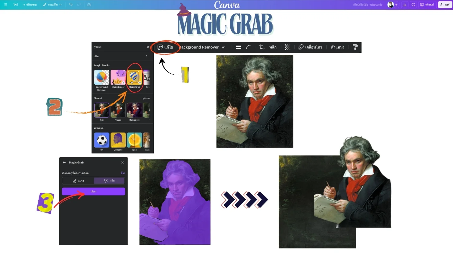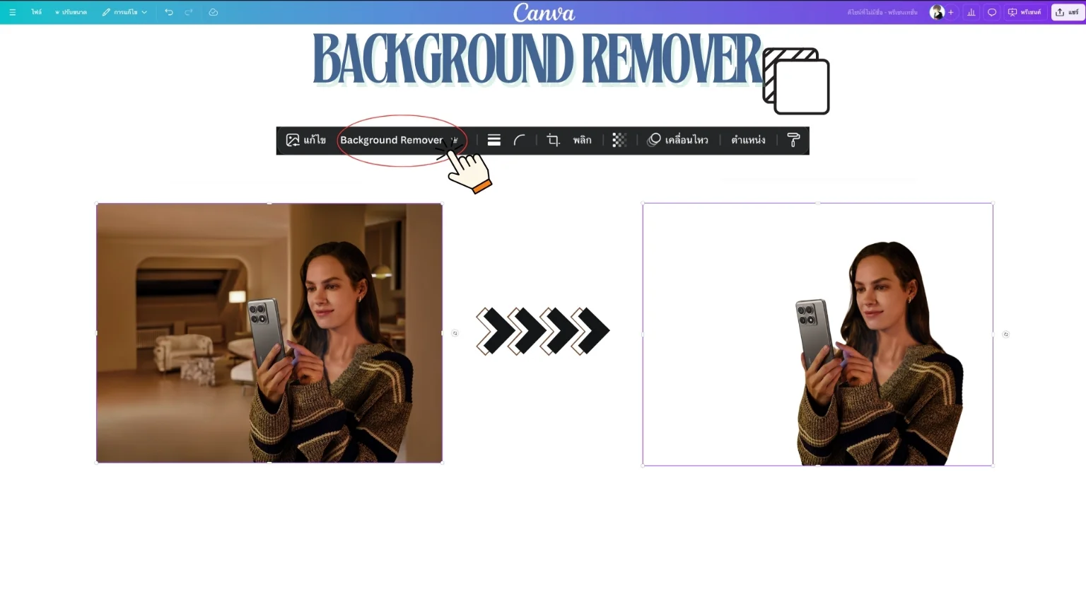 - คลิกที่ Background Remover แล้ว Canva จะลบพื้นหลังออกให้โดยอัตโนมัติ