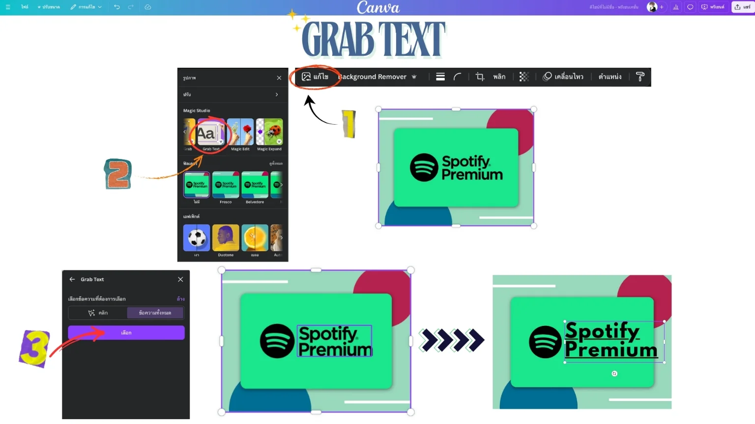 - เลือก Grab Text เพื่อดึงข้อความออกมาและแก้ไขได้ทันที