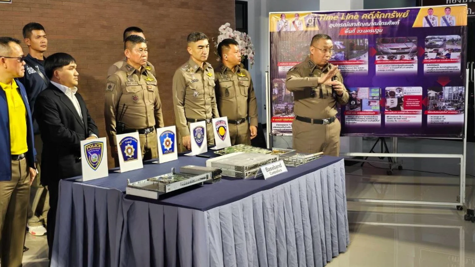 ตำรวจภูธรภาค 7 ได้ปฏิบัติการทลายแก๊งโจรกรรมอุปกรณ์เสาสัญญาณมือถือของทรู คอร์ปอเรชั่น ในพื้นที่จังหวัดราชบุรี กาญจนบุรี นครปฐม และจังหวัดอื่นๆ ทั่วประเทศ จับกุมผู้ต้องหา 5 ราย ตรวจยึดของกลางได้มีจำนวนทั้งสิ้น 43 รายการ รวม 357 ชิ้น มูลค่าประมาณ 22,500,000 บาท ประกอบด้วยอุปกรณ์รับ-ส่งสัญญาณ อุปกรณ์ควบคุมสัญญาณมือถือ ขบวนการโจรกรรมนี้เป็นเครือข่ายใหญ่ที่ลักลอบขโมยอุปกรณ์เสาสัญญาณโทรศัพท์มือถือทั่วประเทศ เพื่อส่งขายต่อให้ผู้รับซื้อต่างชาติ ขณะนี้ เจ้าหน้าที่ตำรวจกำลังสืบสวนขยายผลอย่างเข้มข้น มุ่งเป้าไปที่การค้นหาแหล่งรับซื้อของกลุ่มอาชญากรและติดตามเส้นทางการเงิน โดยมีเป้าหมายเพื่อทลายเครือข่ายอาชญากรรมนี้ให้หมดสิ้น
