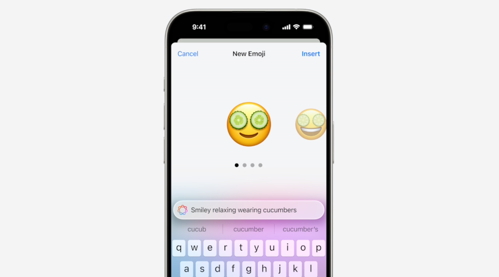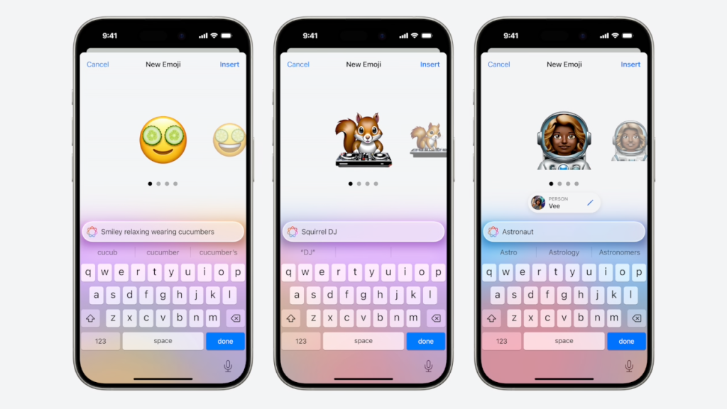 ฟีเจอร์ Genmoji สามารถให้ผู้ใช้สร้างอิโมจิส่วนตัวได้ง่าย ๆ แค่พิมพ์คำสั่ง หรือใช้รูปถ่ายในเครื่อง และสั่งให้ AI เจนภาพออกมาตามสั่ง