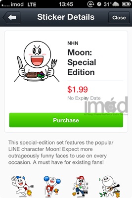 การซื้อ sticker เพิ่มนั้นเป็น In App Purchase ซึ่งจะลิงก์กับ Apple ID ของเราได้เลย เลือกไปที่ลายที่เราต้องการจะซื้อแล้วกด Purchase