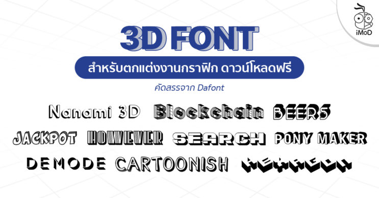 ฟอนต์แบบ 3D จะช่วยให้งานกราฟิกดูมีมิติและสวยงามมากขึ้น สร้างความโดดเด่นให้กับตัวอักษร ในการดาวน์โหลดใช้งานนั้นให้เรากดปุ่ม Download แล้วแตกไฟล์พร้อมกับติดตั้งบน Mac, Windows หรือ iPhone, iPad ได้เลย วิธีที่แอดมินอัปเดตให้ล่าสุดสามารถรับชมได้ตามวิดีโอด้านล่างนี้
