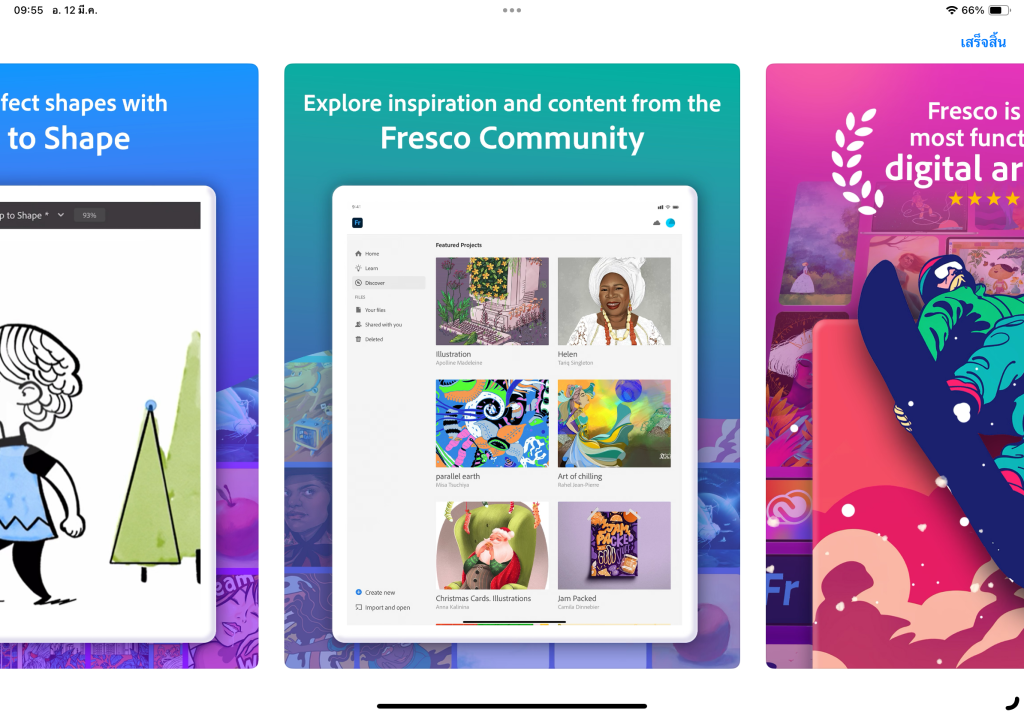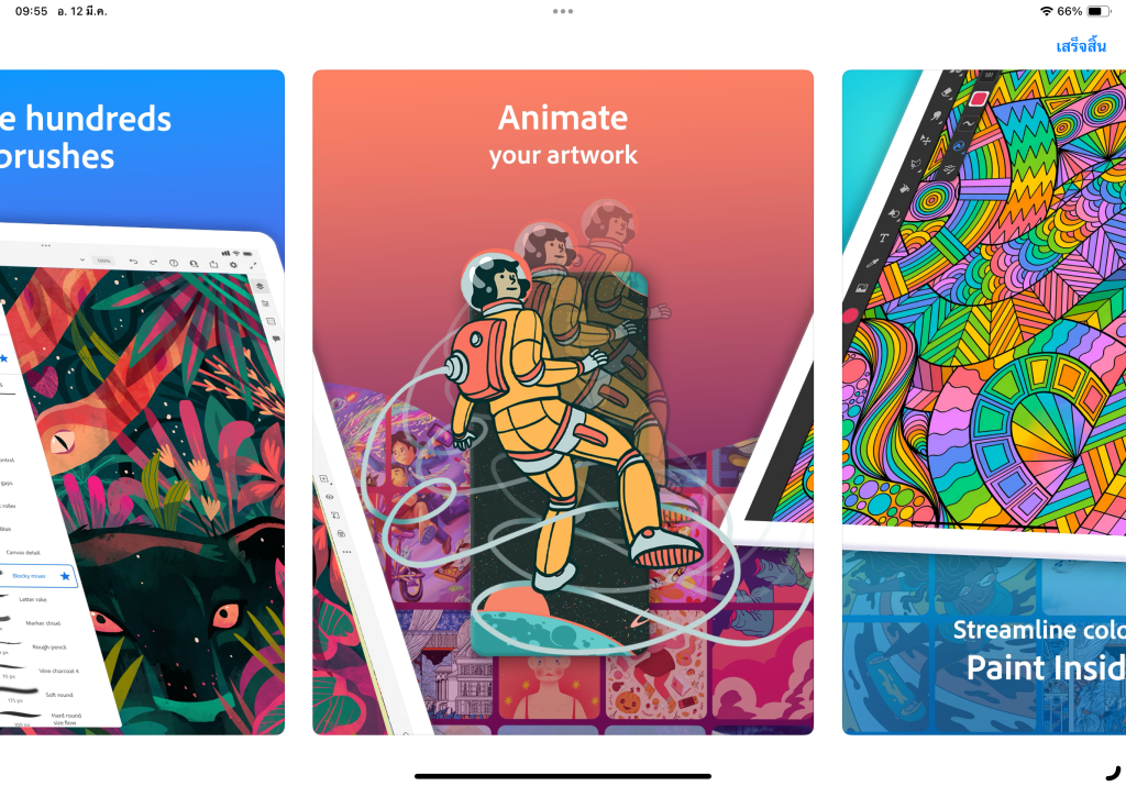 - สำหรับมืออาชีพ : Procreate, Adobe Illustrator for iPad, Adobe Fresco