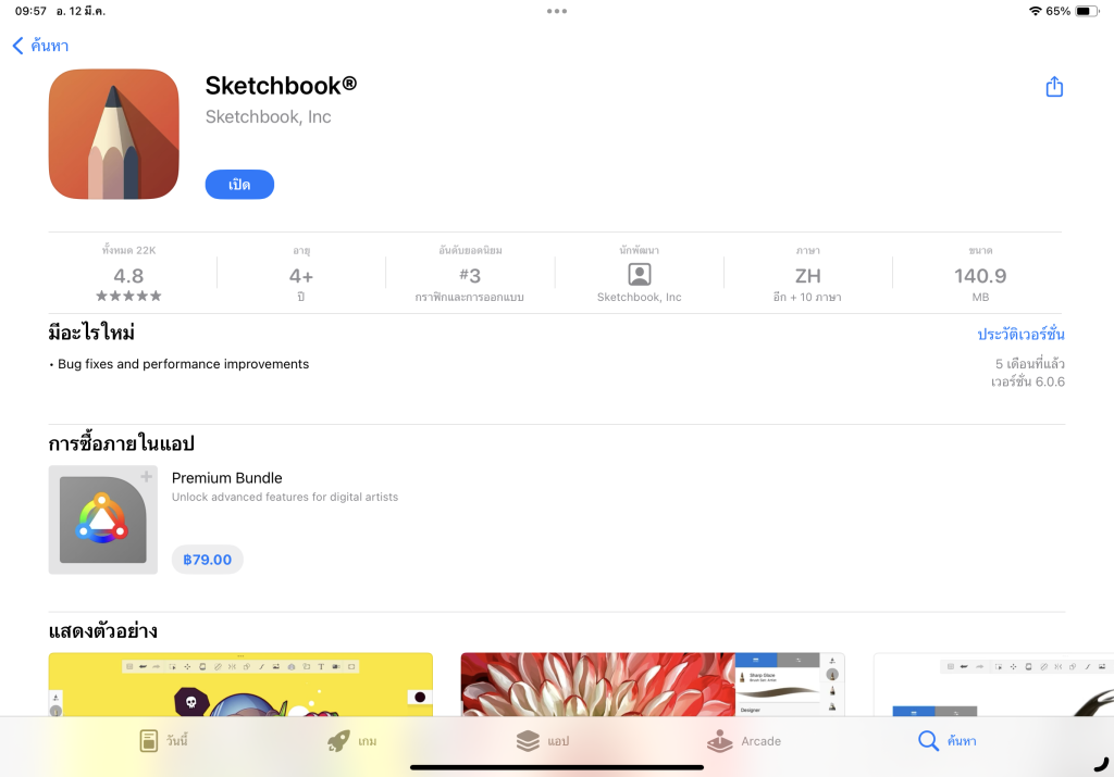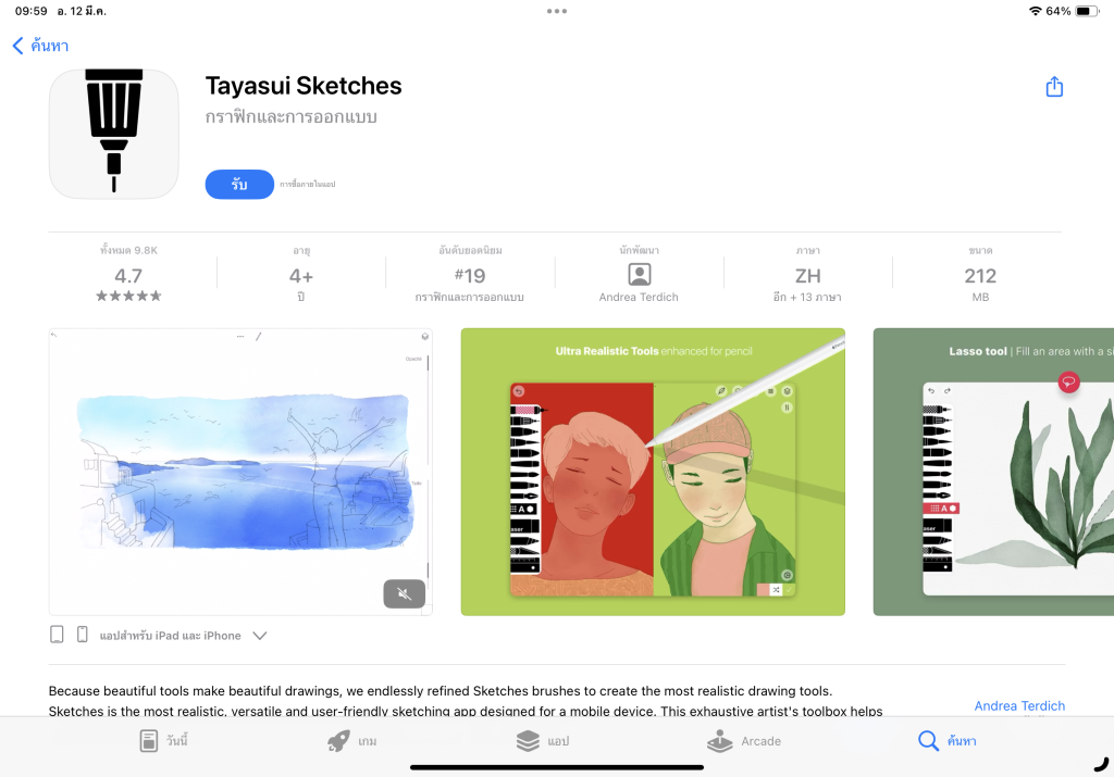 - สำหรับร่างภาพ : Tayasui Sketches, Linea Sketch