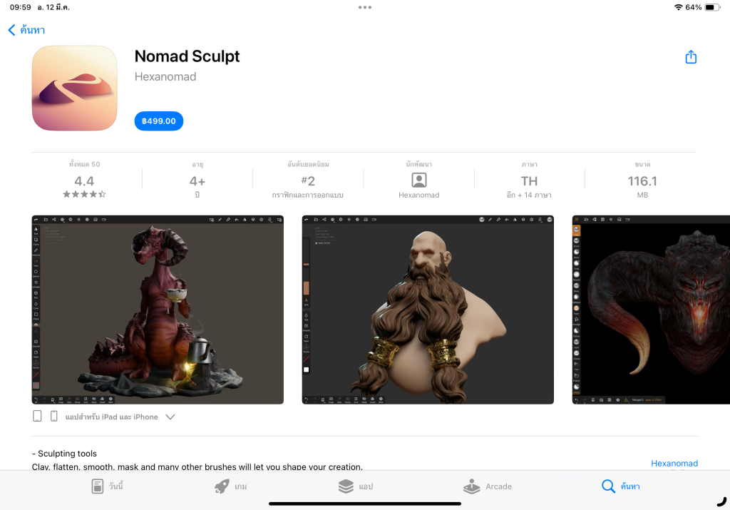 - สำหรับปั้นโมเดล 3D : Nomad Sculpt