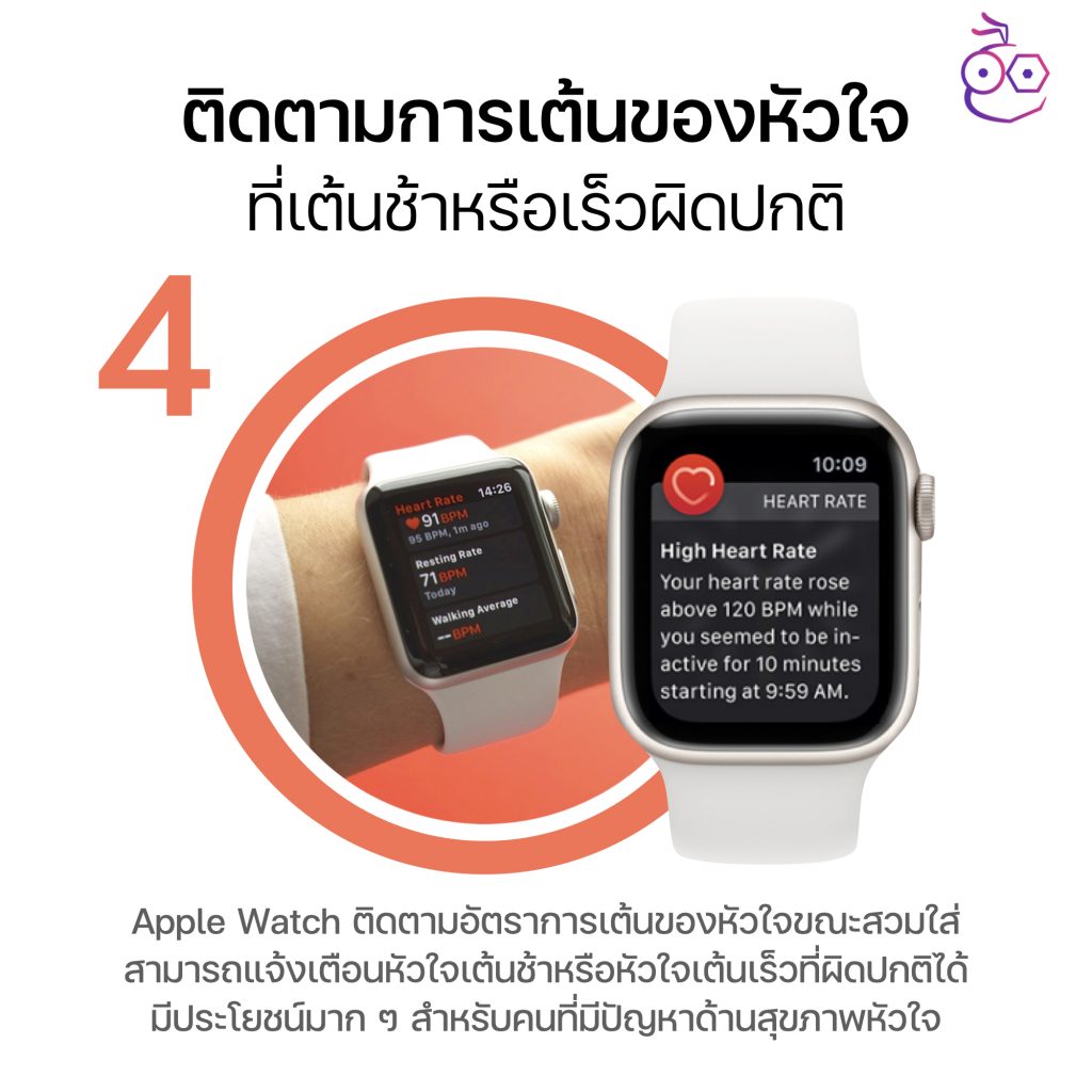 Apple Watch ติดตามอัตราการเต้นของหัวใจของเราอยู่เสมอขณะสวมใส่และสามารถแจ้งเตือนหัวใจเต้นช้าหรือหัวใจเต้นเร็วเมื่อพบความผิดปกติได้ [ชมวิธีตั้งค่าเปิดใช้งาน] มีประโยชน์มาก ๆ สำหรับคนที่มีปัญหาด้านสุขภาพหัวใจ