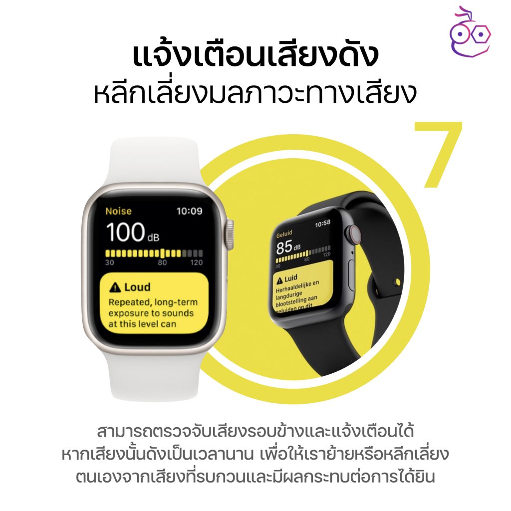 Apple Watch มีฟีเจอร์การตรวจจับเสียงรบกวน ที่สามารถตรวจจับเสียงรอบข้างของเราและแจ้งเตือนได้หากเสียงนั้นดังเป็นเวลานาน (ตามที่เราเลือกตั้งค่าเดซิเบลไว้ [ชมวิธีตั้งค่า]) เพื่อให้เราย้ายหรือหลีกเลี่ยมตนเองจากเสียงที่รบกวนและมีผลกระทบต่อการได้ยิน