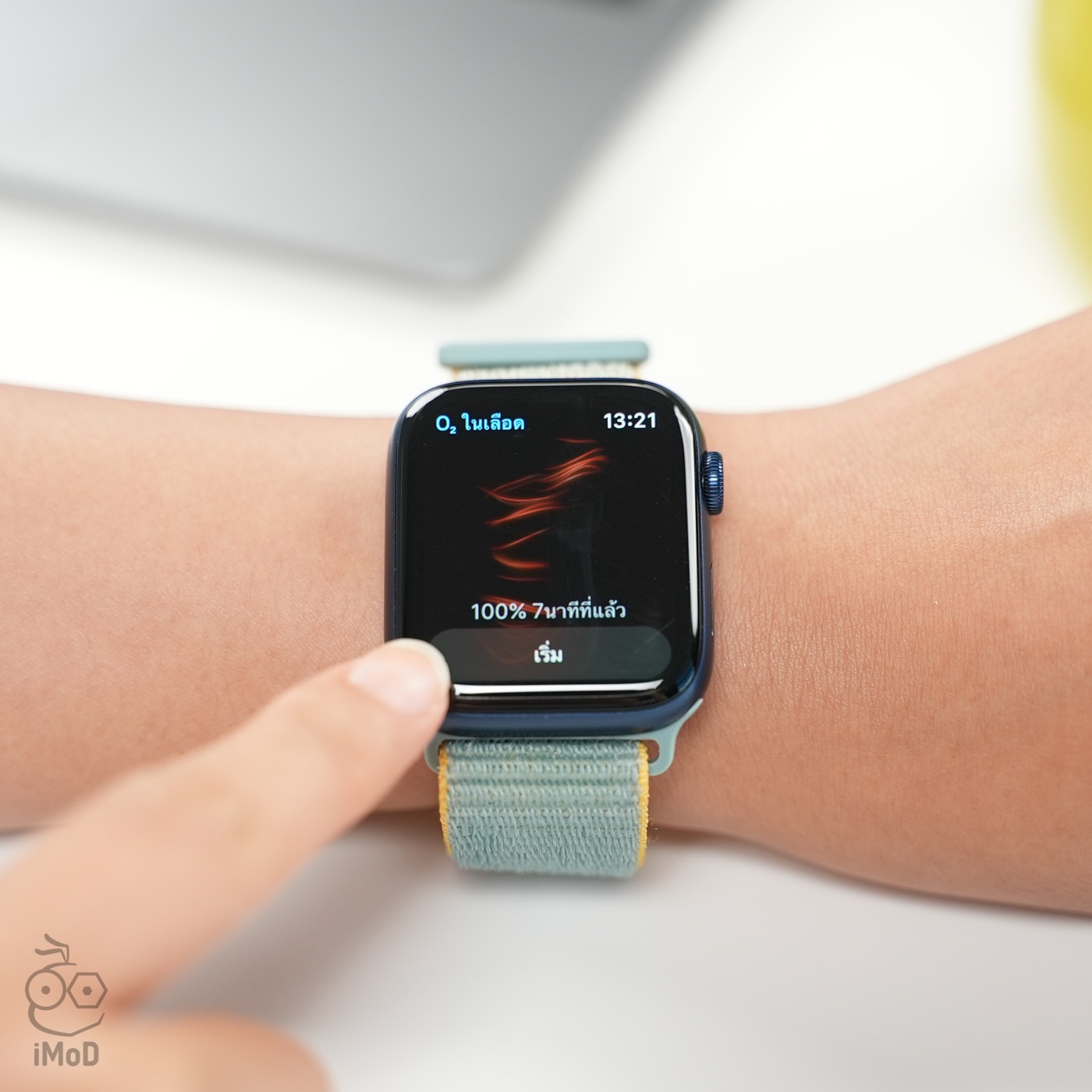 การวัดออกซิเจนควรสวมใส่ Apple Watch ให้พอดีไม่หลวมหรือแน่นจนเกินไป และอยู่นิ่ง ๆ เป็นเวลา 15 วินาที Apple Watch จะใช้เซ็นเซอร์ตรวจจับและประมวลผลออกมา