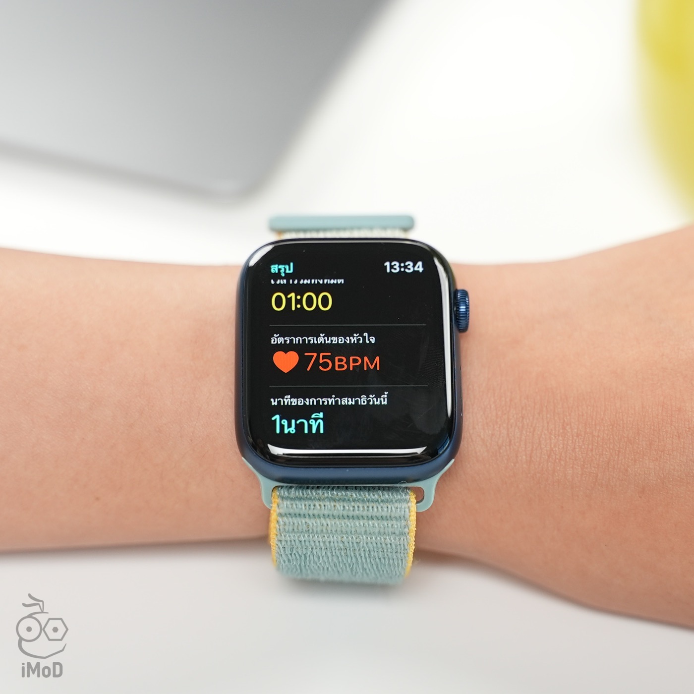 สุขภาพกายที่ดีแล้ว สุขภาพจิตที่ดีก็สำคัญเช่นกัน Apple มองเห็นถึงสุขภาพโดยรวมจีงให้ความสำคัญกับหลายด้าน ดังนั้นใน Apple Watch จึงมีแอปทำสมาธิ เพื่อให้เราได้สงบจิตใจชั่วครู่หนึ่ง หลังจากผ่านเรื่องราวเหนื่อยมาทั้งวัน
