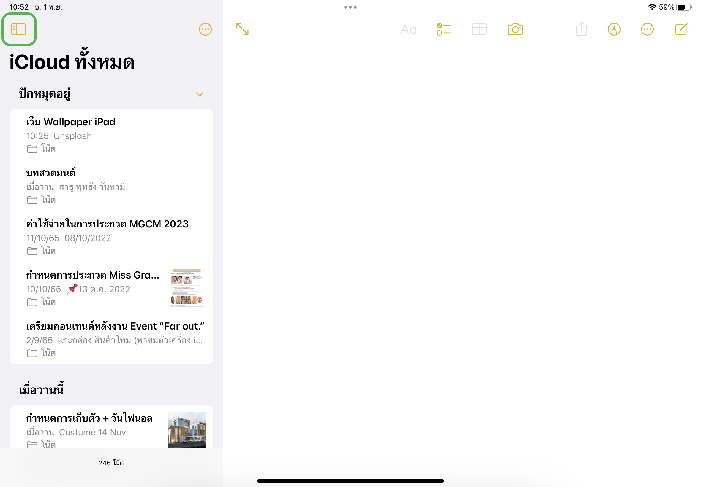 สำหรับแอปโน้ตใน iPadOS 16.1 จะจัดแบ่ง