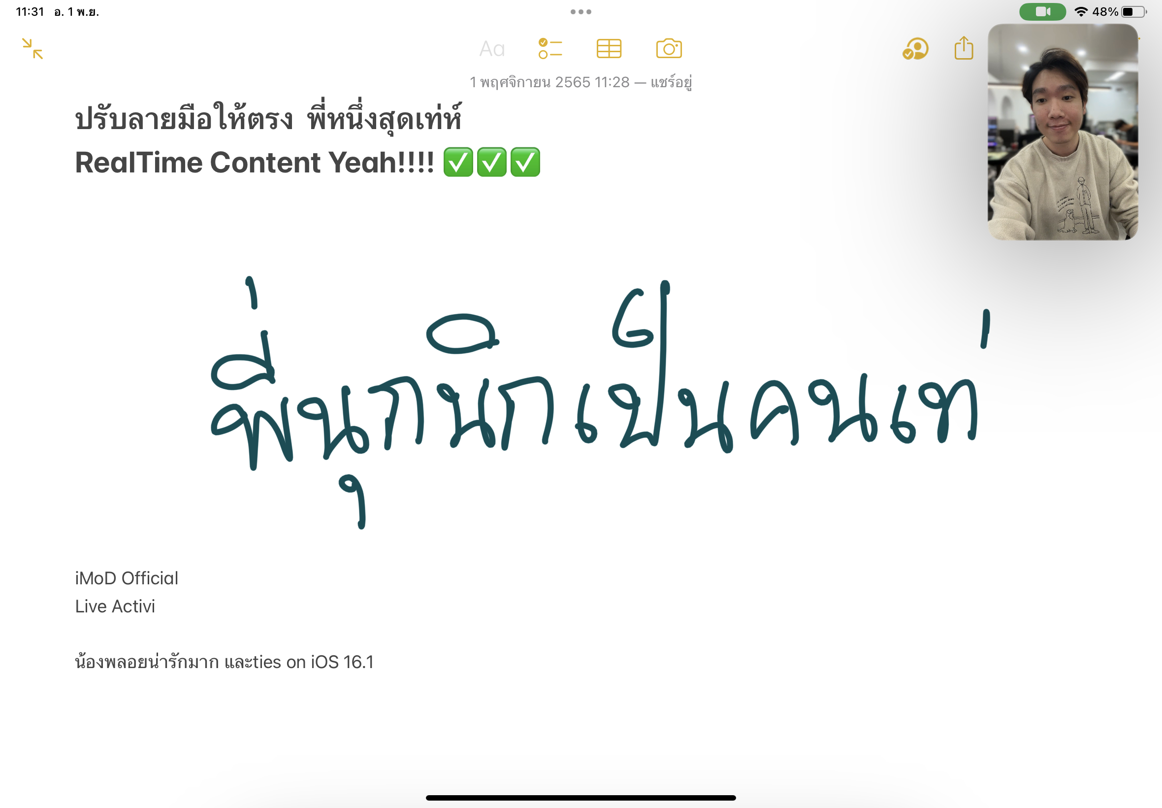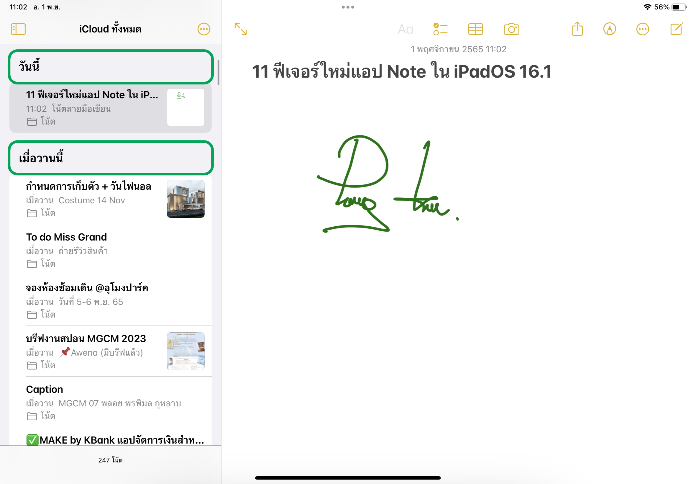 ถ้าหากเราเขียนตัวหนังสือลงไปในโน้ตแล้วรู้สึกว่าเขียนไม่ตรง หรือไม่เป็นระเบียบ ใน iPadOS 16.1 มีฟีเจอร์สำหรับช่วยปรับลายมือของเราให้เป็นระเบียบมากขึ้นได้โดยอัตโนมัติ