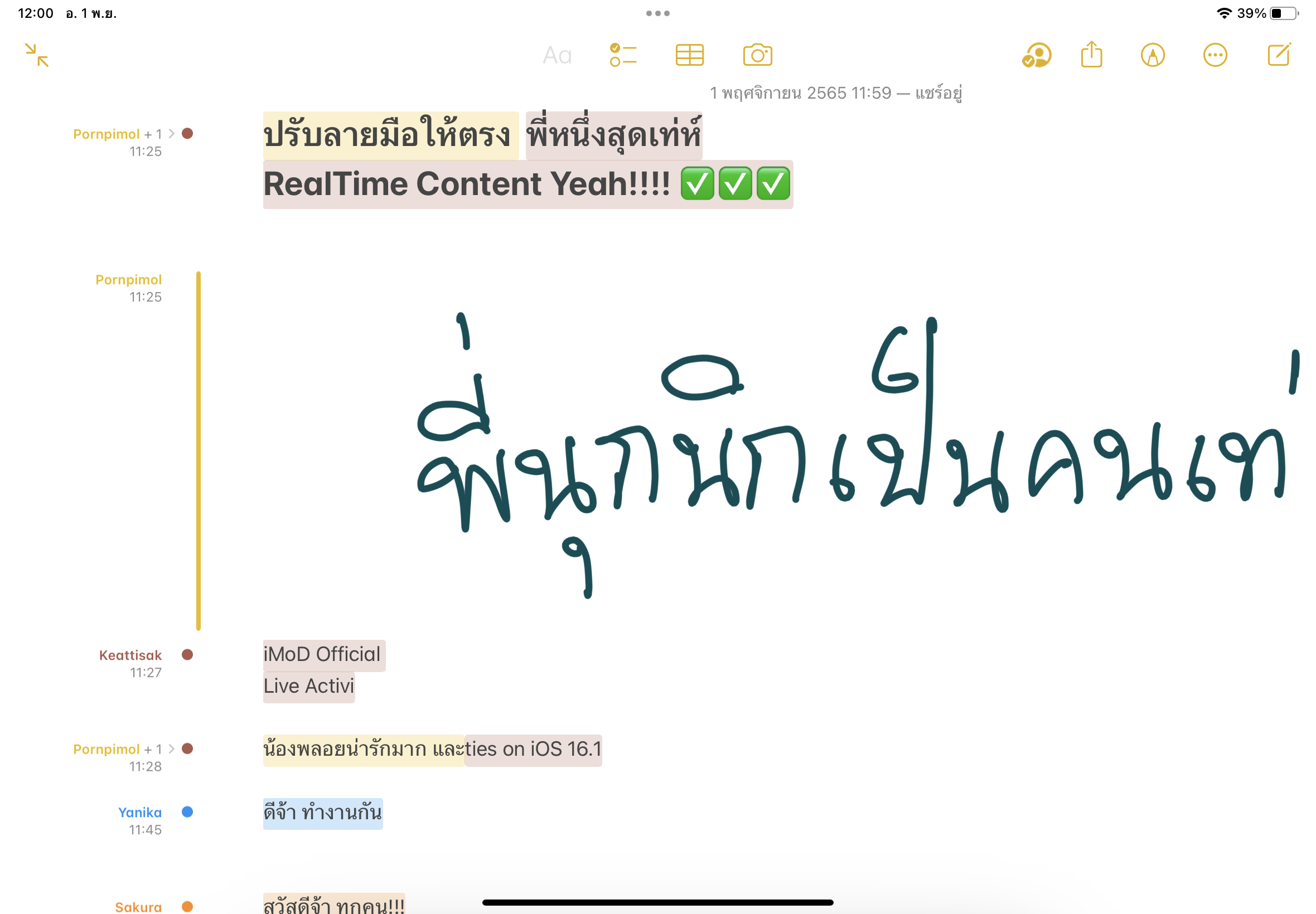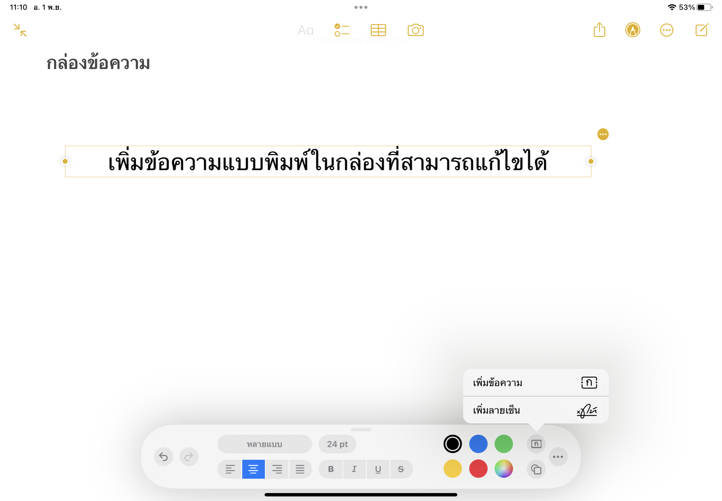 iPadOS 16.1 สามารถแก้ไขข้อความแบบพิมพ์ในกล่องข้อความได้เลยภายในพื้นที่สำหรับการวาดภาพในโน้ตของเรา