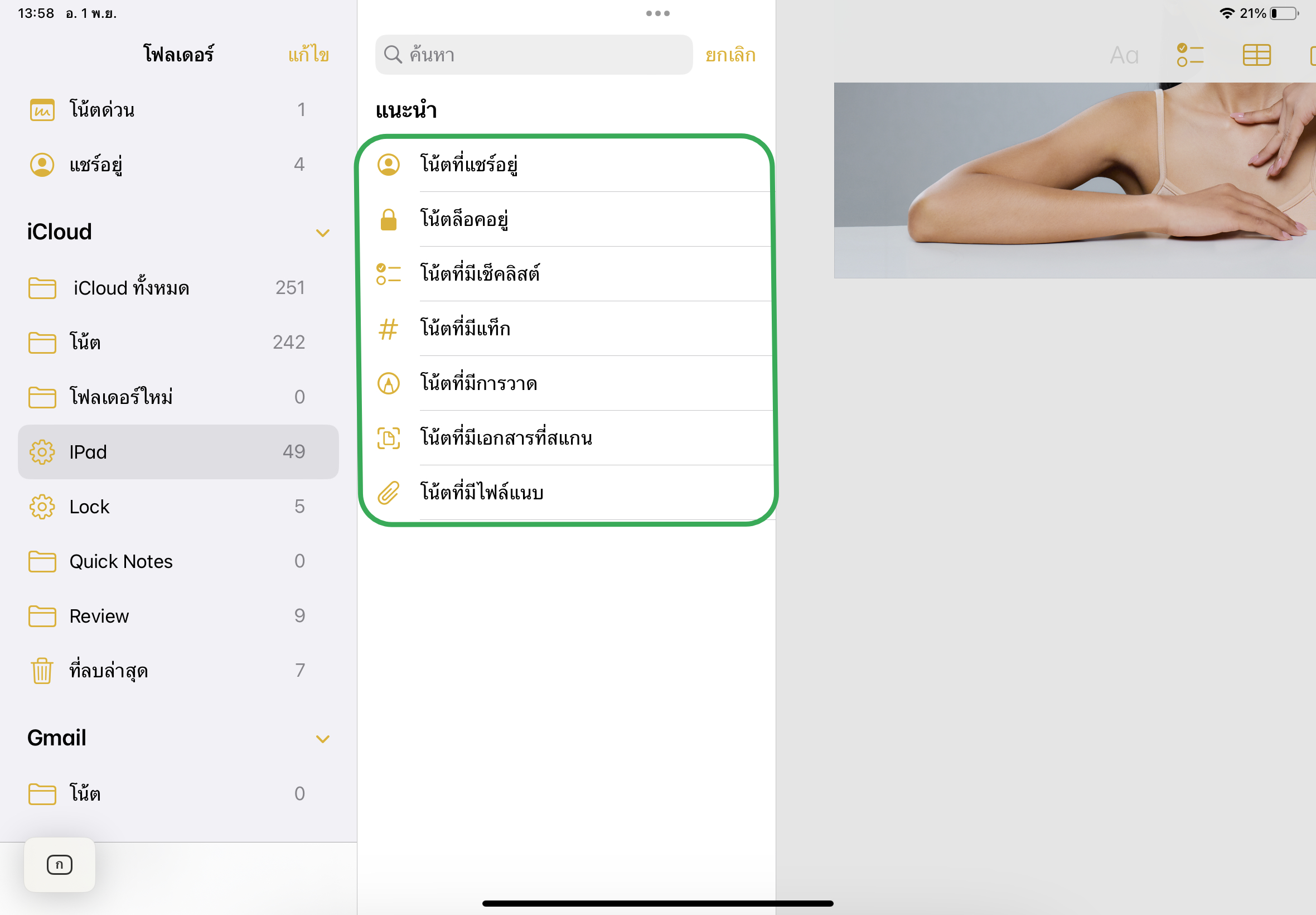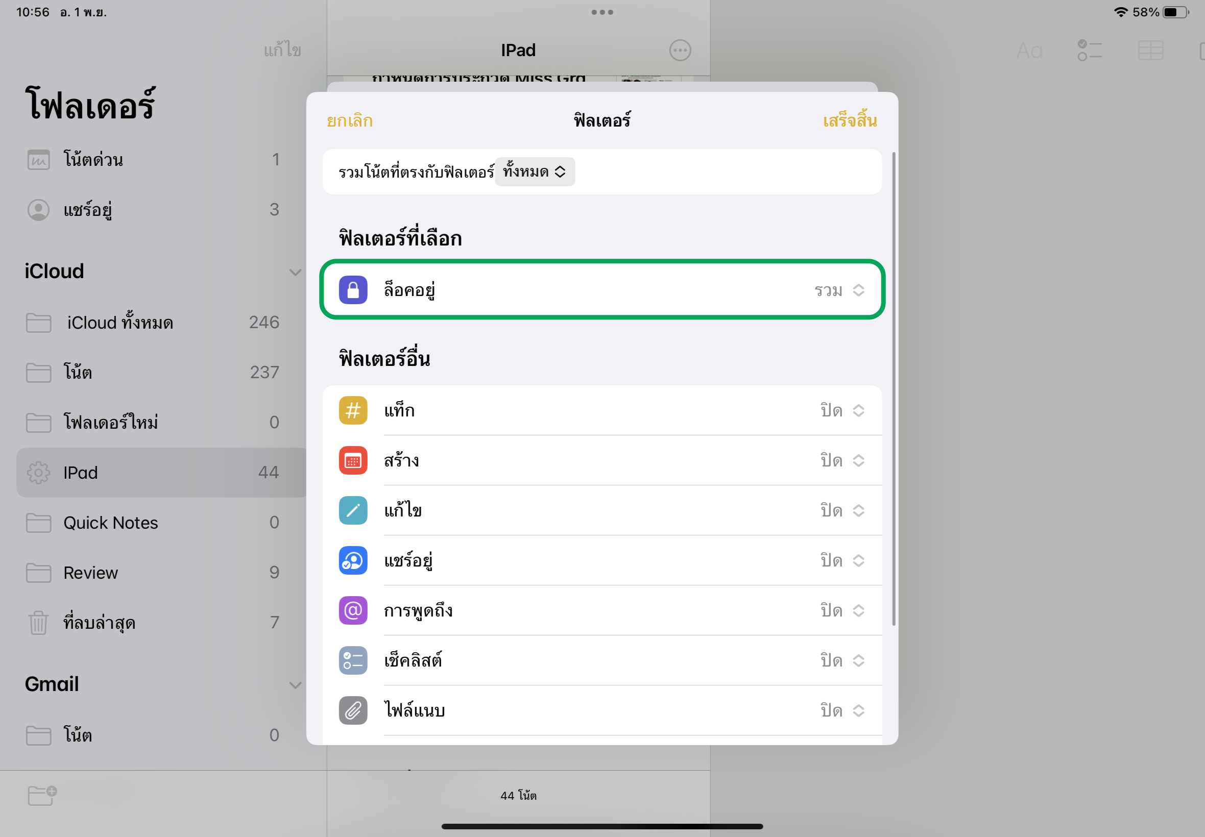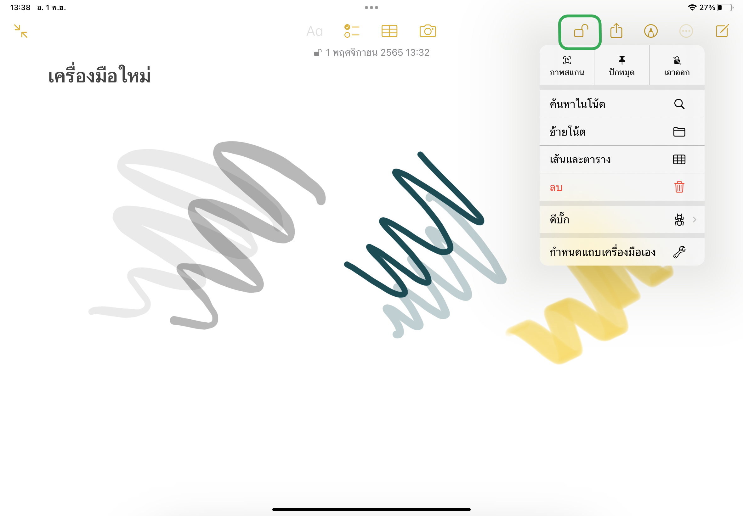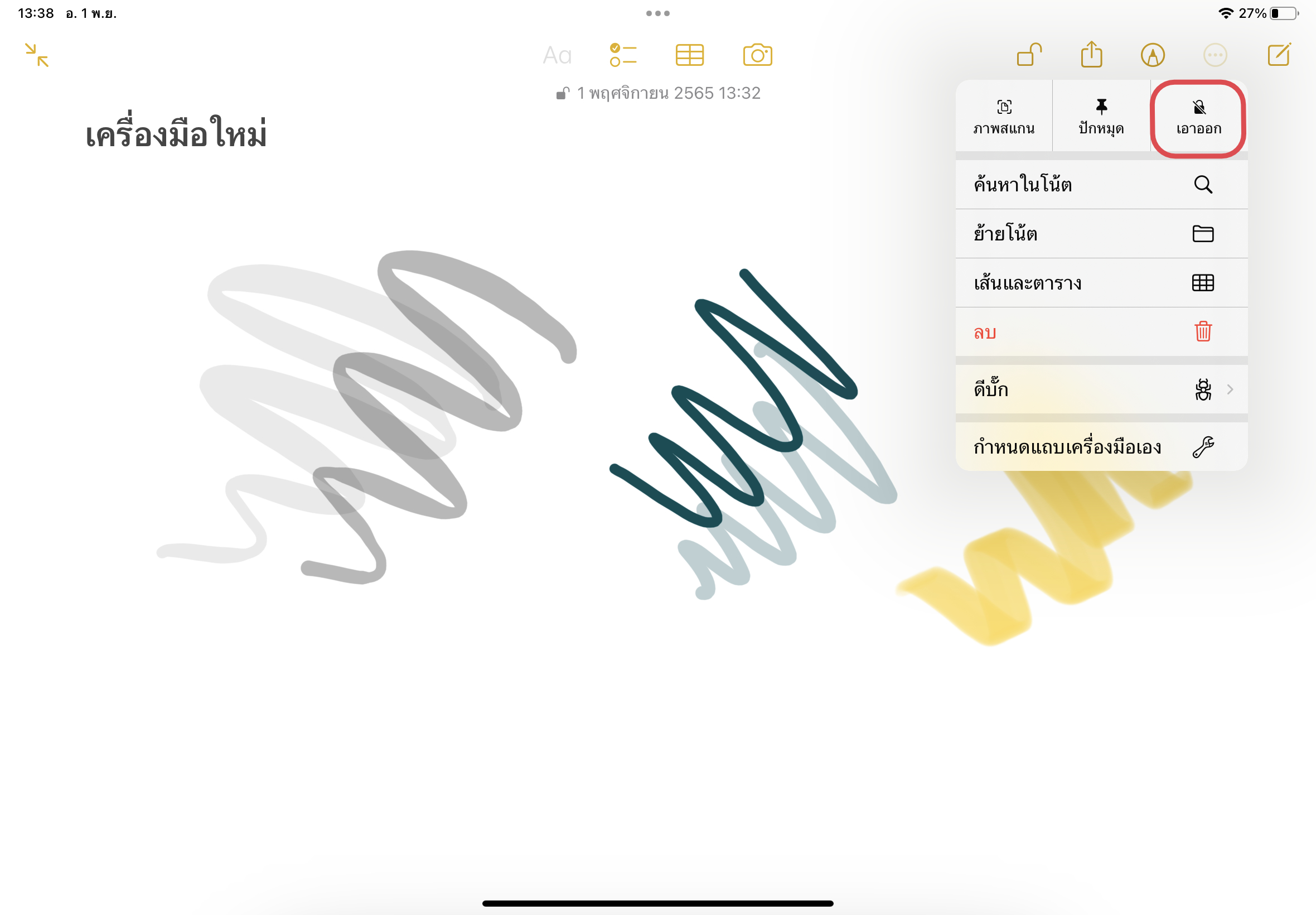 และถ้าหากไม่ต้องการล็อคโน้ตแล้ว ให้แตะที่จุดสามจุดอีกครั้ง > แตะ “เอาออก”
