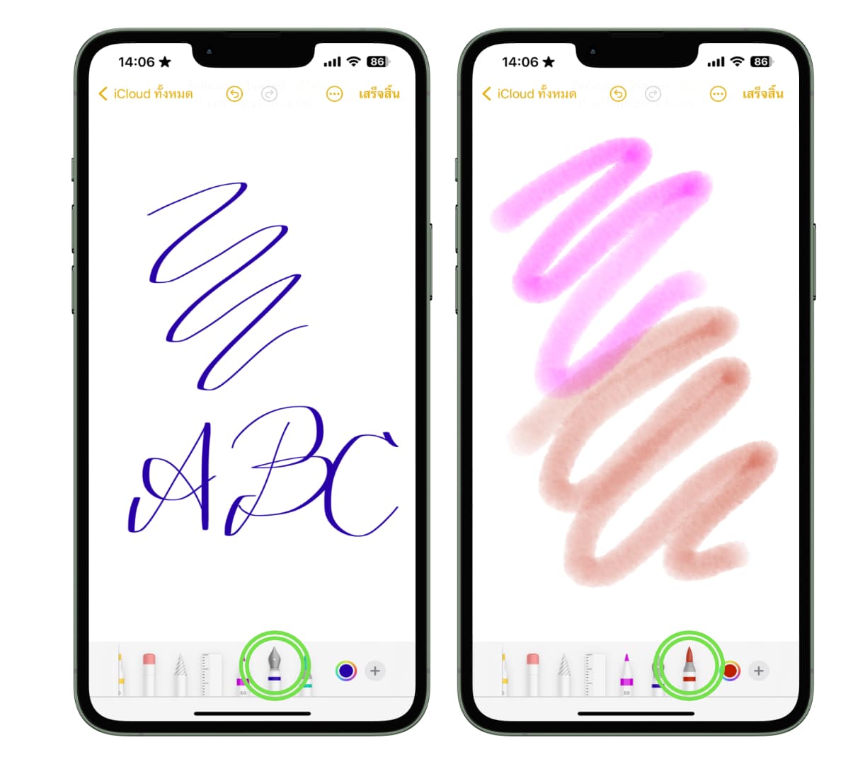 Apple ได้เพิ่มเครื่องมือ Markup ที่เป็นหัวปากกาเข้ามาใหม่ 2 อัน หากเลื่อนแถบเครื่องมือไปทางซ้าย เราจะพบกับหัวปากกาที่เป็นหมึกซึม และหัวปากกาที่คล้ายกับการระบายสีน้ำ ทำให้การจดบันทึกของเรามีความหลากหลายมากขึ้น และใน iPadOS 16.2 ก็มีให้ใช้งานเช่นกัน