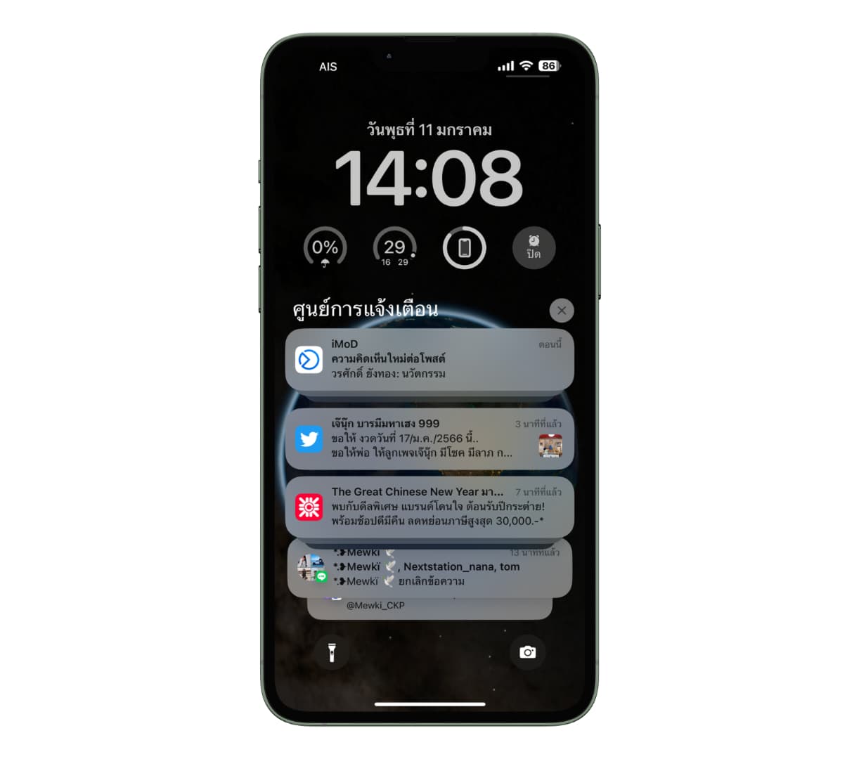 ไม่ว่าจะใช้งานแอปไหนหรือทำอะไรอยู่ก็สามารถเรียกดูศูนย์แจ้งเตือนได้แล้ว