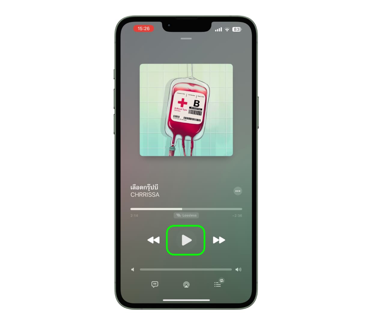 เมื่อฟังเพลงผ่านแอป Apple Music โดยเชื่อมต่อกับลำโพงในรถยนต์ จะมีสัญลักษณ์รูปรถยนต์ปรากฏขึ้นเพื่อให้เรารู้ว่าเรากำลังฟังเพลงผ่านลำโพงของรถ