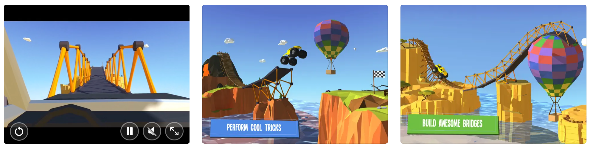 เกมสร้างสะพานที่เราสามารถประยุกต์ใช้ทรัพยากรในการสร้างสะพานได้อย่างหลากหลาย จำลองการสร้างสะพานในรูปแบบของตัวเราเองเพื่อผ่านแต่ละด่านไปให้ได้