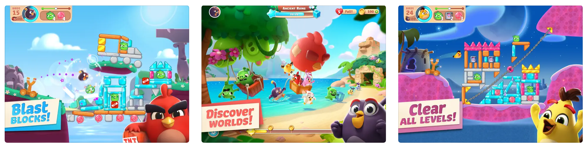 เกมและตัวละครคลาสสิคอย่าง Angry Birds ที่สามารถหยิบมาเล่นเมื่อไหร่ก็ได้ เพลิดเพลินไปกับการตะลุยด่านด้วยตัวละคร Angry Birds รุ่นเก่าครบทุกตัว รวมถึงตัวละครใหม่อีกมากมาย และด่านที่พร้อมให้เราเพลิดเพลินอีกร้อยกว่าด่าน