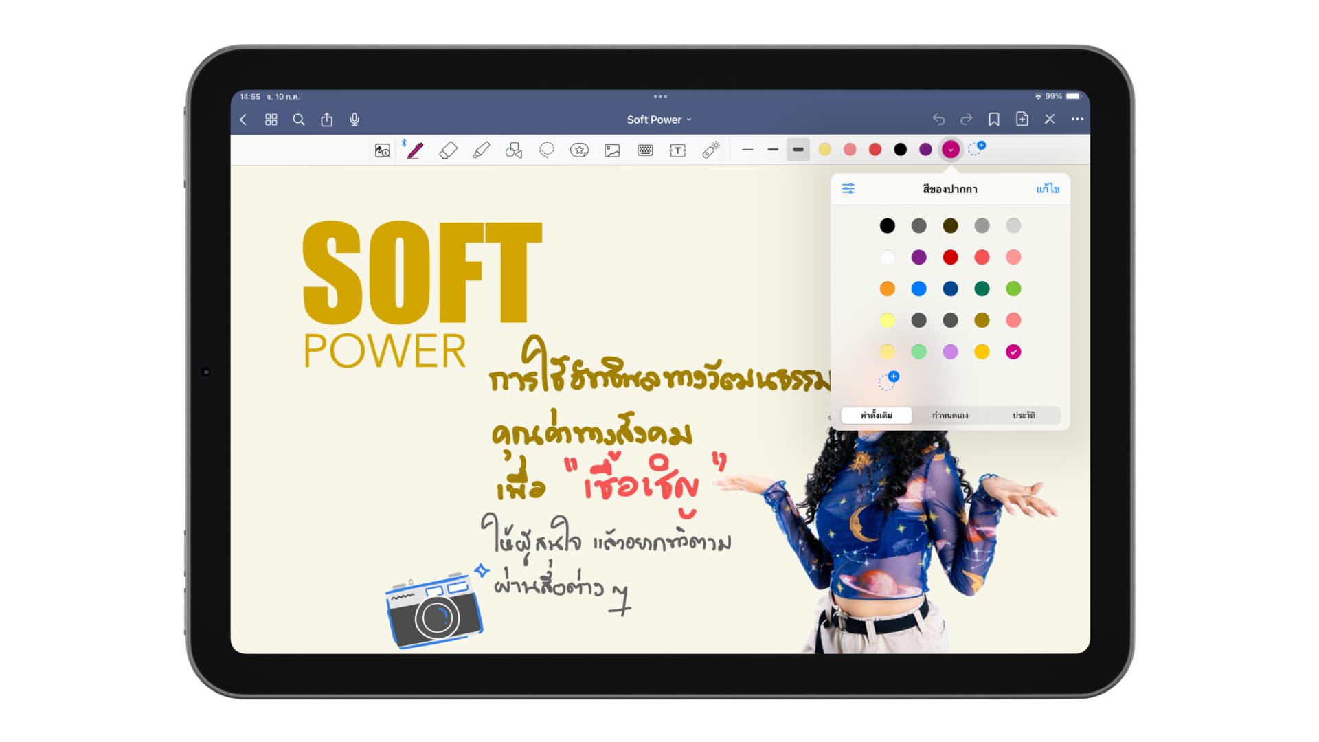 หากใช้งานร่วมกับ Apple Pecil ก็จะทำอะไรได้มากกว่า เช่น จดบันทึกด้วยลายมืออันเป็นเอกลักษณ์ของคุณเอง