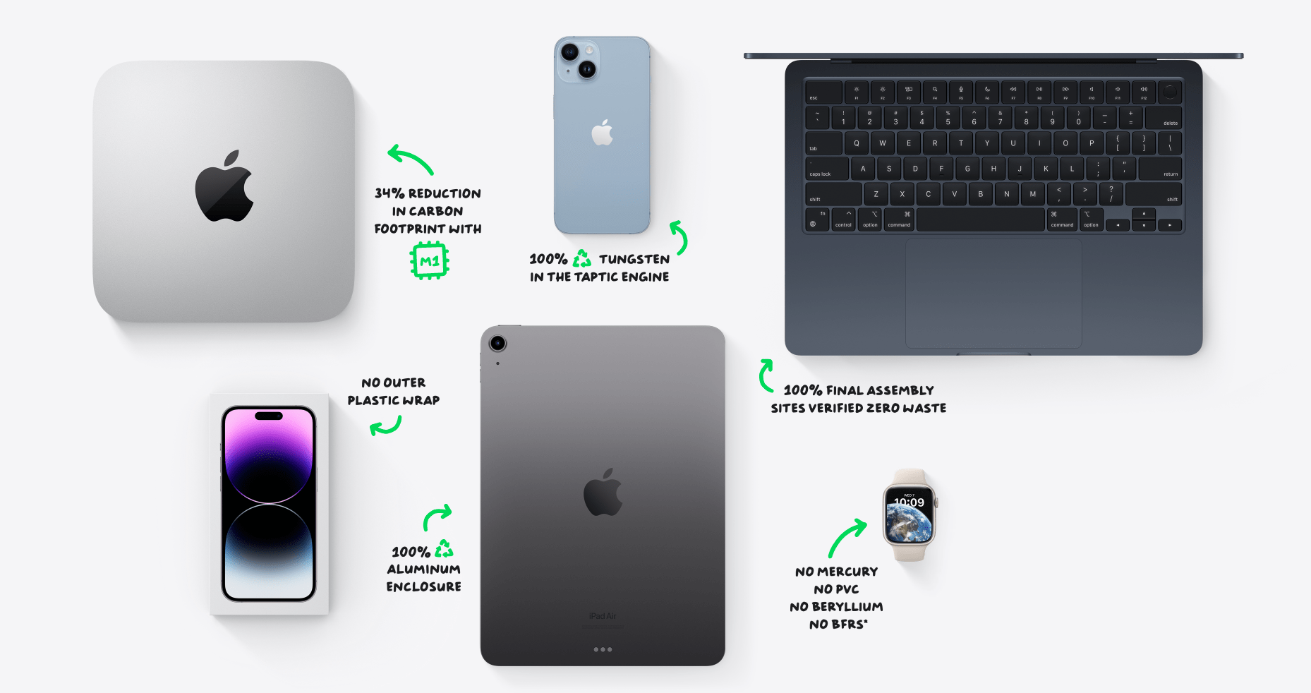 อย่างบริษัท Apple ก็มองเห็นความสำคัญของเทคโนโลยีที่ยั่งยืน โดยให้คำมั่นสัญญาว่าบริษัทจะเป็นกลางทางคาร์บอนในปี 2030 และระหว่างมีก็มีการรายงานผลเรื่อย ๆ ว่าแต่ละปี Apple ลงทุน ดำเนินการ และทำสิ่งใดเพื่อให้บรรลุเป้าหมายที่ว่าบ้าง