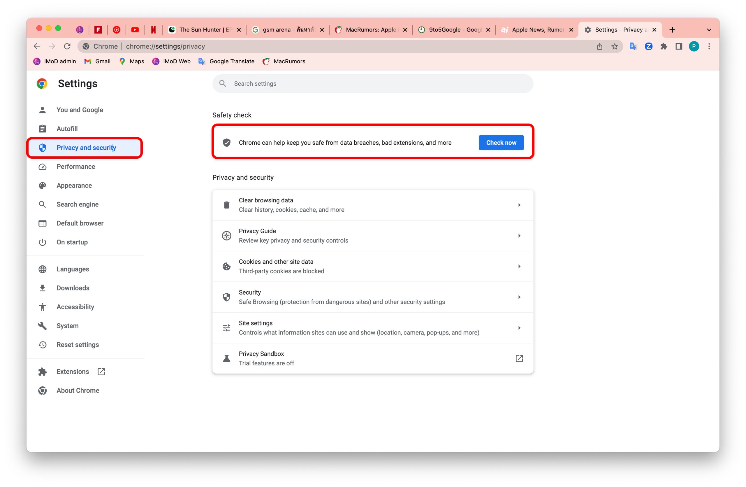 วิธีการคือ ไปที่ “จุดสามจุด” มุมบนขวา > เลือก Settings > ไปที่ Privacy and security > เมนู Safety Check > คลิกที่ “Check now”