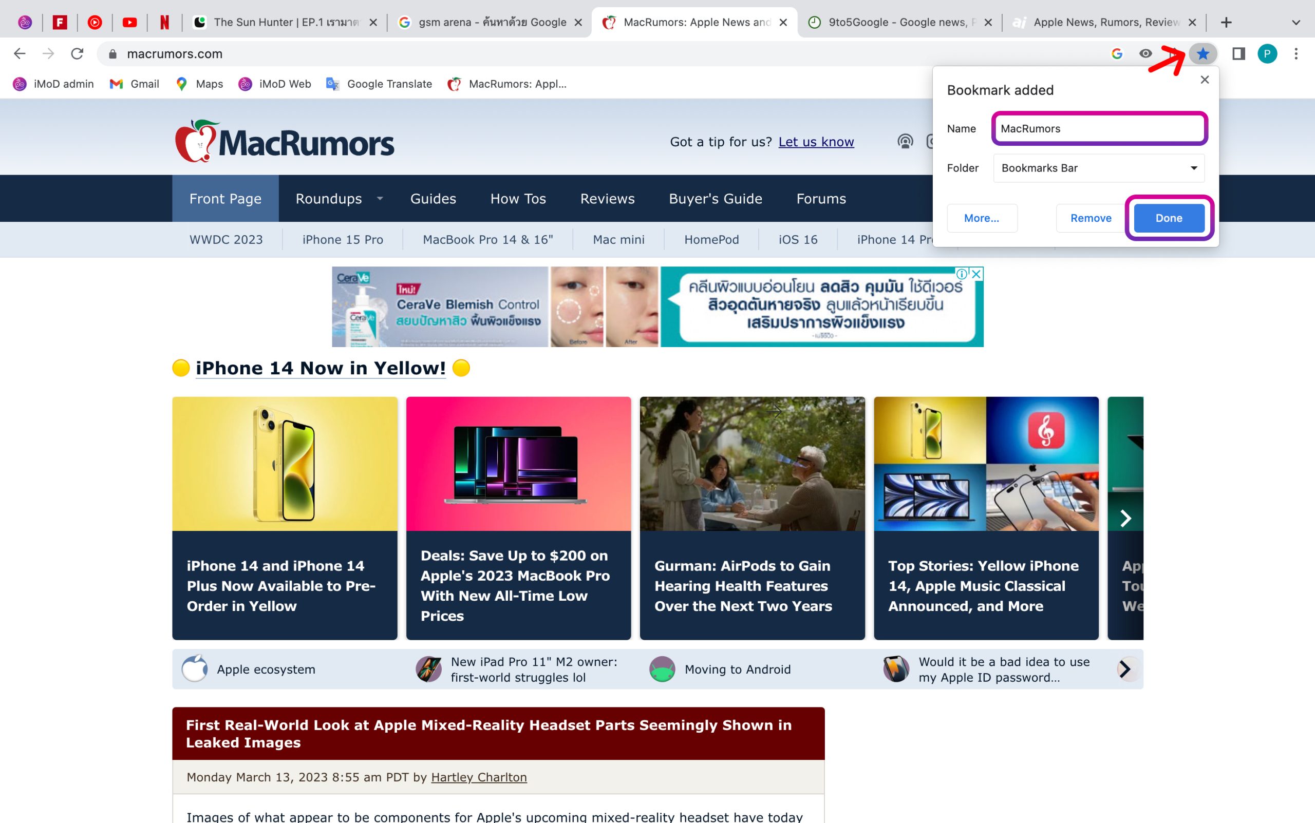 วิธีการคือ ไปที่หน้าเว็บไซต์ที่ต้องการบุ๊คมาร์ค > คลิกที่ไอคอน “รูปดาว” ☆ ขวามือ > ตั้งชื่อแท็บ > คลิก “done”, หากต้องการเอาบุ๊คมาร์คออก > คลิกที่ไอคอน “รูปดาว” ☆ > คลิก “Remove”