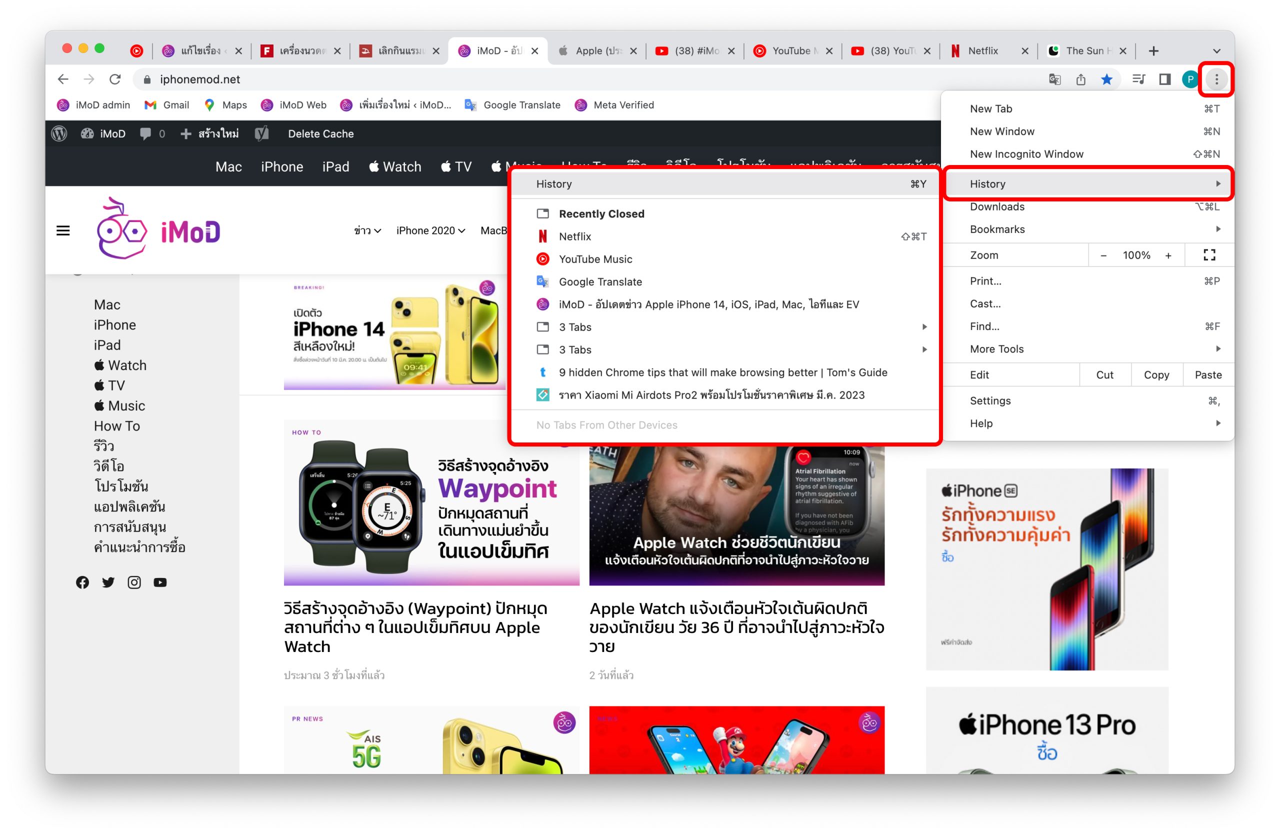 หากใครที่เผลอกดปิดแท็บไปแบบไม่ได้ตั้งใจ สามารถเรียกคืนการเปิดแท็บกลับมาได้ โดยมี 2 วิธีด้วยกัน วิธีแรกคือ ไปที่ “จุดสามจุด” มุมบนขวา > เลือก “History” > จะแสดงแท็บที่เรากดปิดไป > คลิกแท็บที่ต้องการเพื่อเปิดอีกครั้งได้เลย