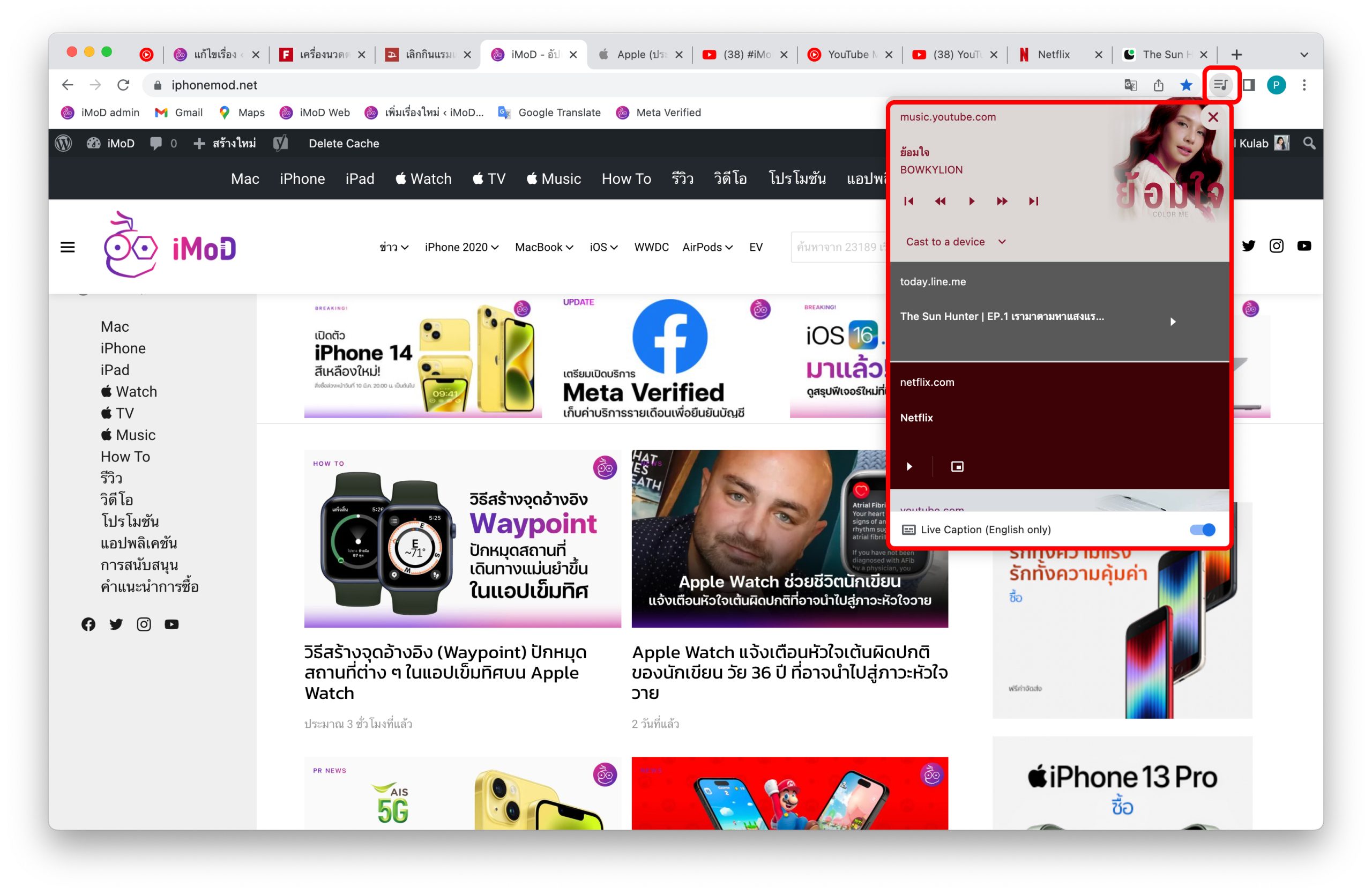 วิธีการใช้งานคือ คลิกที่ไอคอน “ตัวโน้ตเพลง” มุมบนขวา > ควบคุมมีเดียตามต้องการได้เลย