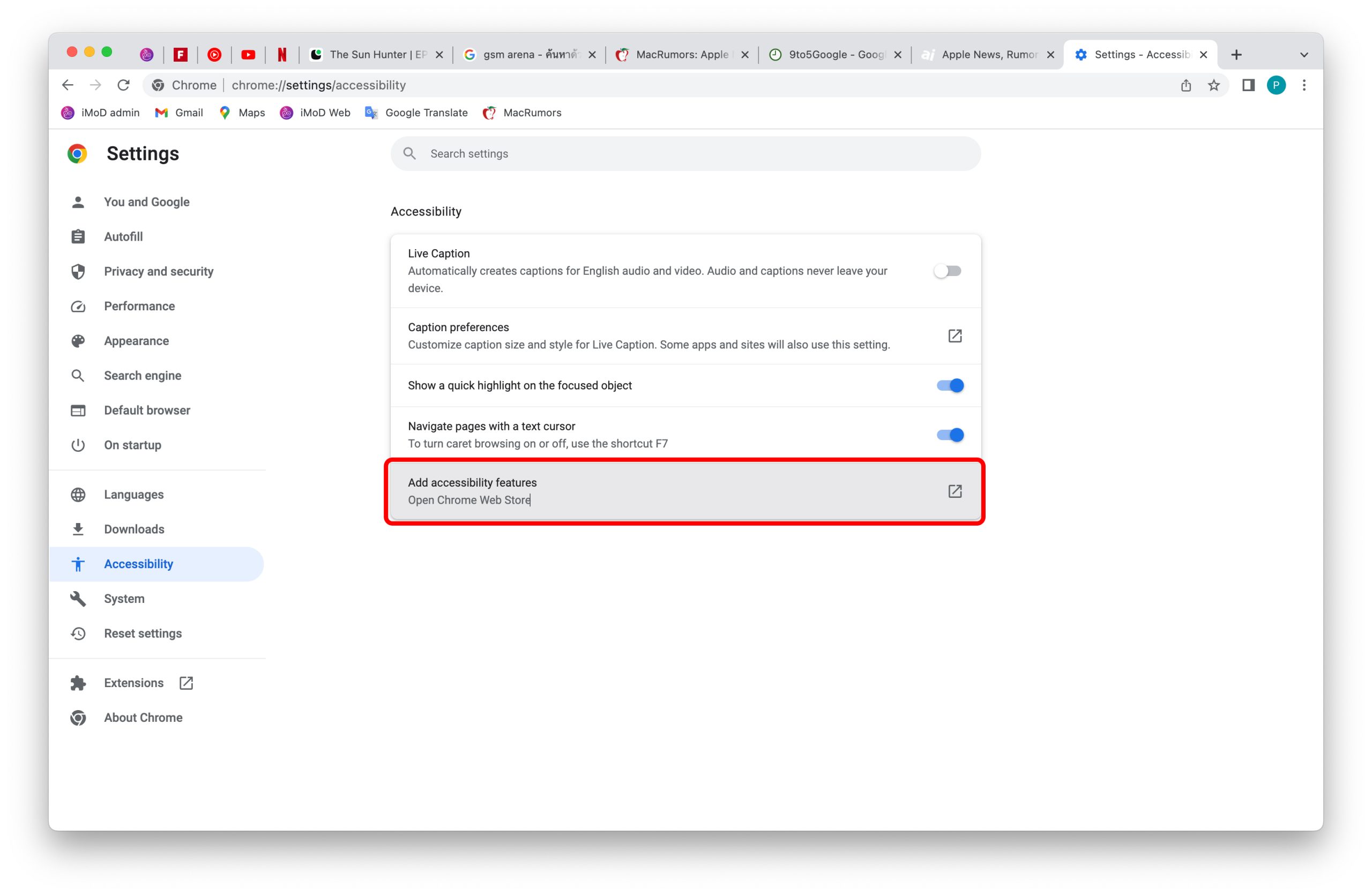 วิธีการคือ ไปที่ “จุดสามจุด” มุมบนขวา > เลือก Settings > เลือก Accessibility > เลือก Add accessibility features > เลือกเพิ่มส่วนขยาย หรือดาวน์โหลดธีมตามต้องการได้เลย