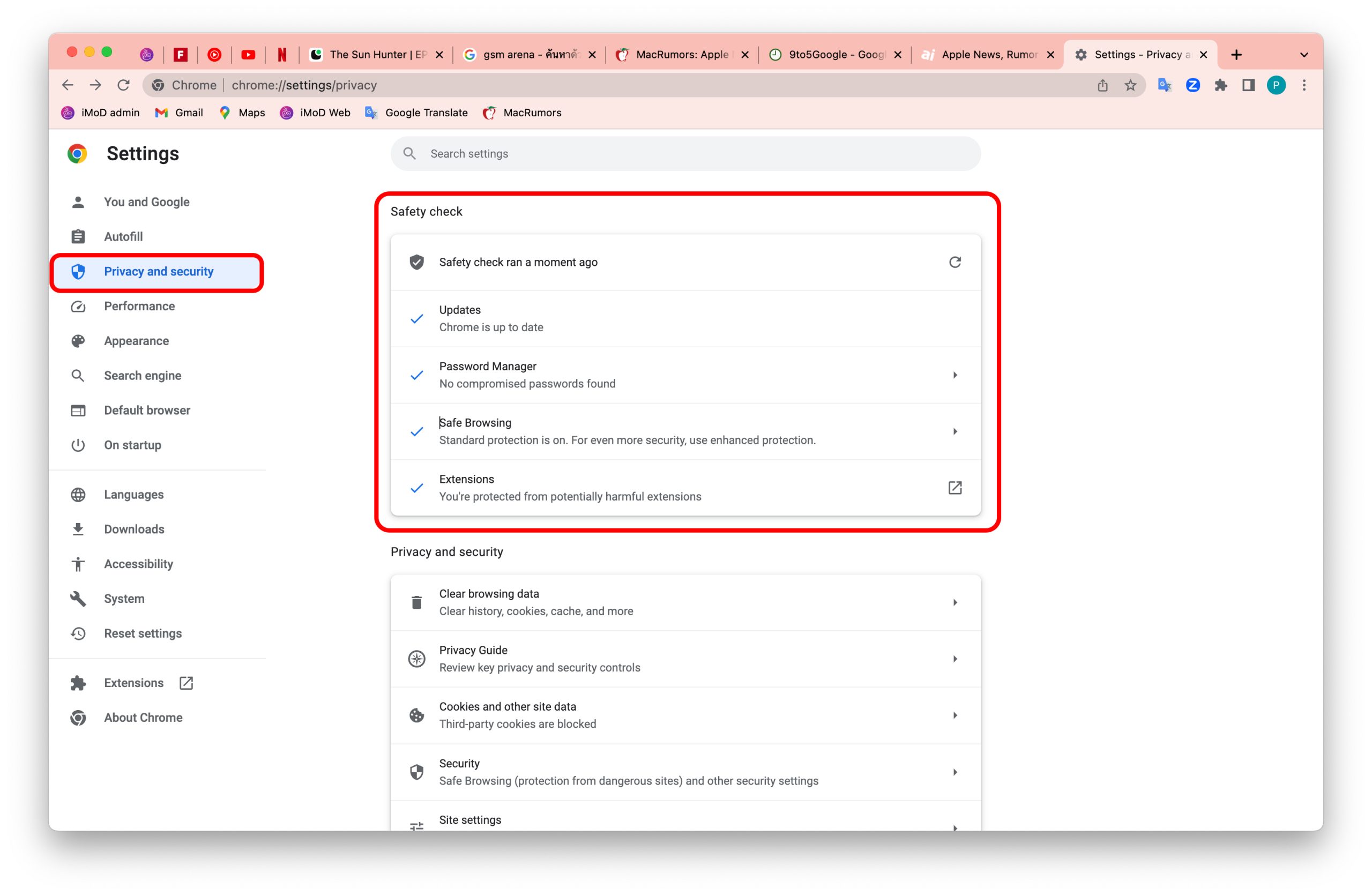 เราสามารถตั้งค่าให้ Google Chrome ตรวจหา Extensions ที่เป็นของปลอม การป้องกันไวรัส รวมถึงดูว่ารหัสผ่านที่ล็อคอินในเว็บไซต์ต่าง ๆ ของเราถูกบุกรุกได้ด้วย