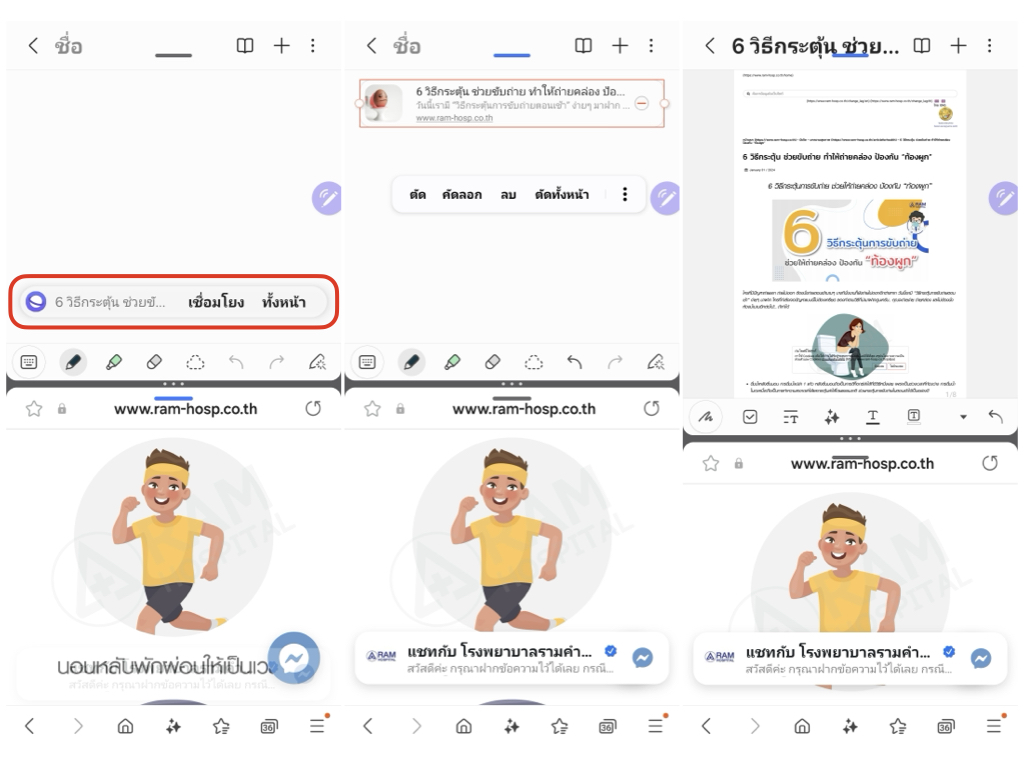 นอกจากนี้หากเปิดใช้แอปโน้ต กับเบราว์เซอร์พร้อมกันก็ยังสามารถเชื่อมโยงลิงค์ลงไปบนโน้ต หรือกดเพิ่มเนื้อหาทั้งหน้าเว็บไซต์ลงไปได้เลย