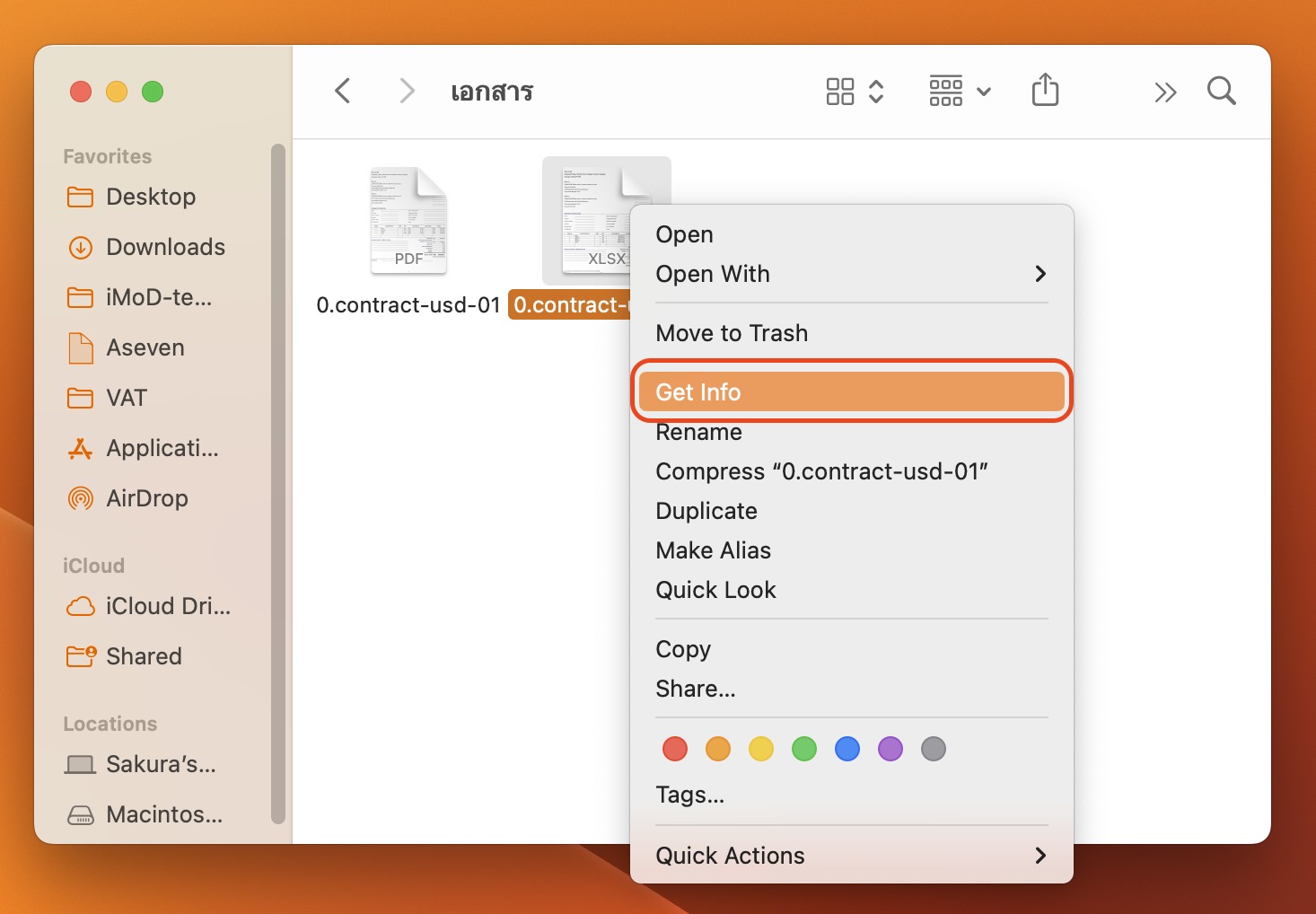 คลิกขวาที่ไฟล์เทมเพลตหรือไฟล์ต้นฉบับ > Get Info