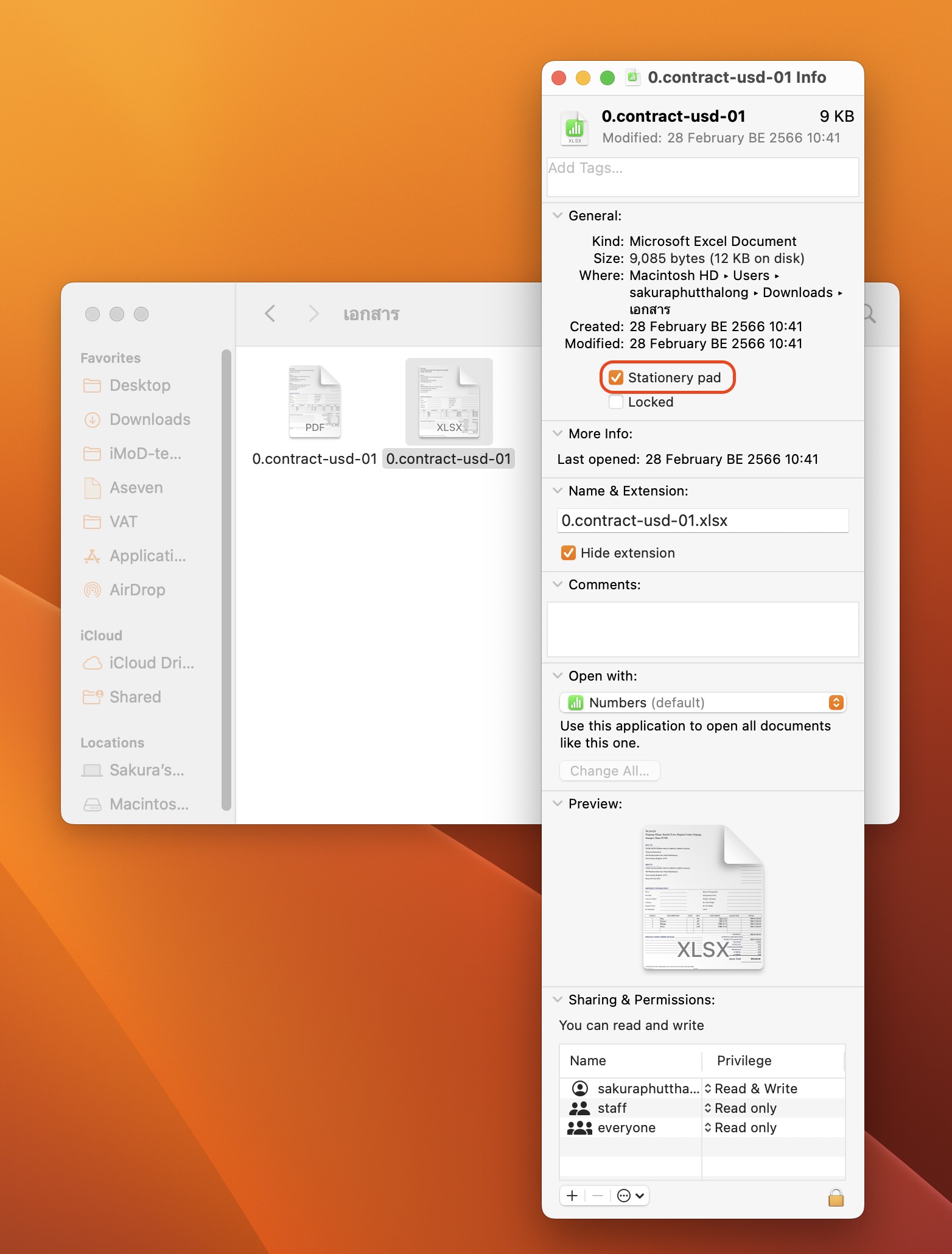 หากเรามีไฟล์ที่เป็นเทมเพลตและต้องนำมาปรับแต่งอยู่เป็นประจำ เราสามารถตั้งค่าให้เปิดไฟล์นี้เป็นสำเนาทุกครั้งได้ จากนั้นเราก็ปรับแต่งไฟล์สำเนา โดยที่ไม่ยุ่งเกี่ยวกับไฟล์หลักหรือไฟล์เทมเพลต โดยตั้งค่าเปิดใช้งาน โดยเลือกเป็น Stationery Pad สำหรับไฟล์เทมเพลต วิธีนี้จะช่วยป้องกันไม่ให้ไฟล์เทมเพลตหรือไฟล์ต้นฉบับถูกแก้ไข