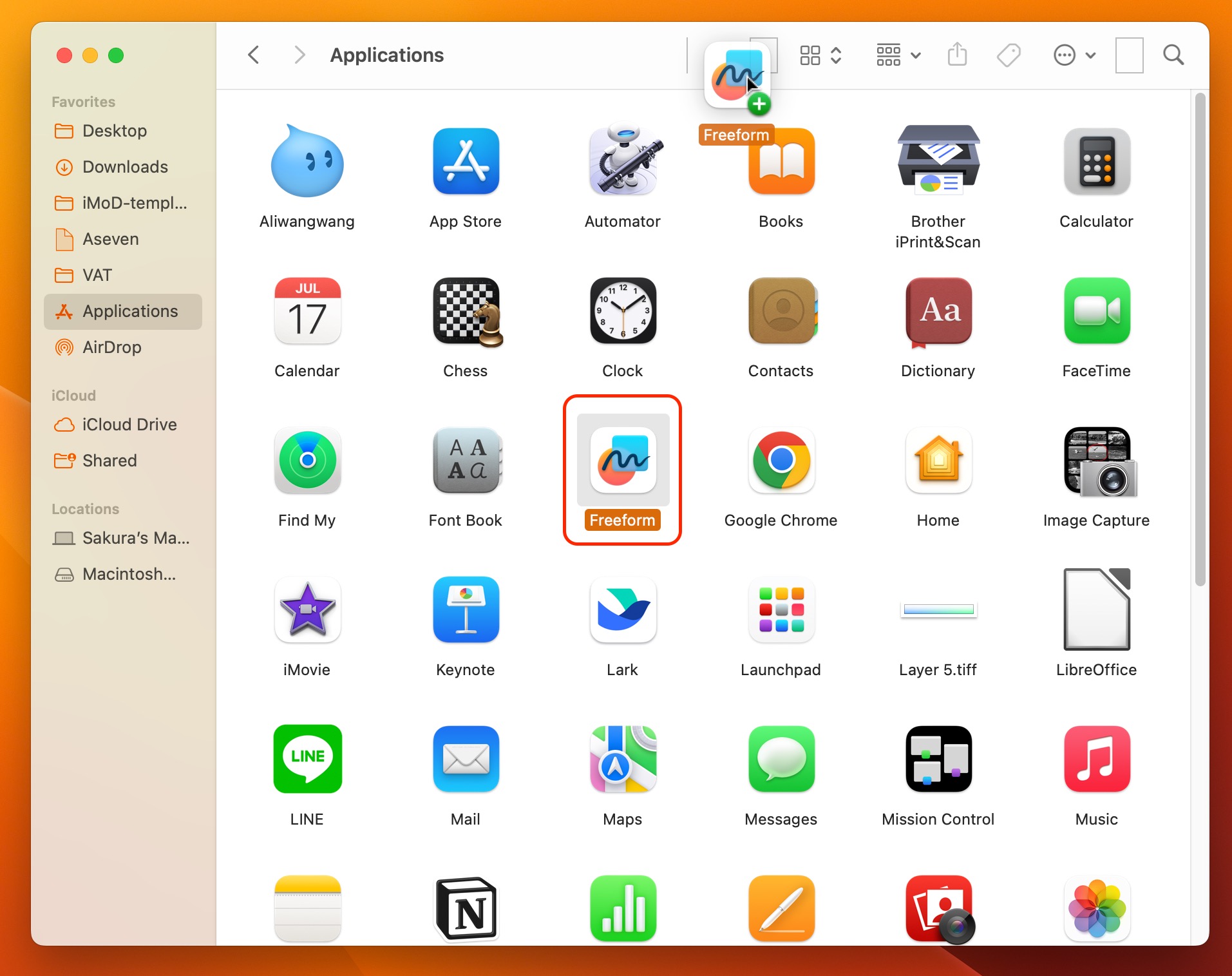 หากต้องการนำแอป โฟลเดอร์ หรือไฟล์ออก ให้กดปุ่ม Command ค้างไว้ แล้วลากลงมาที่ Finder