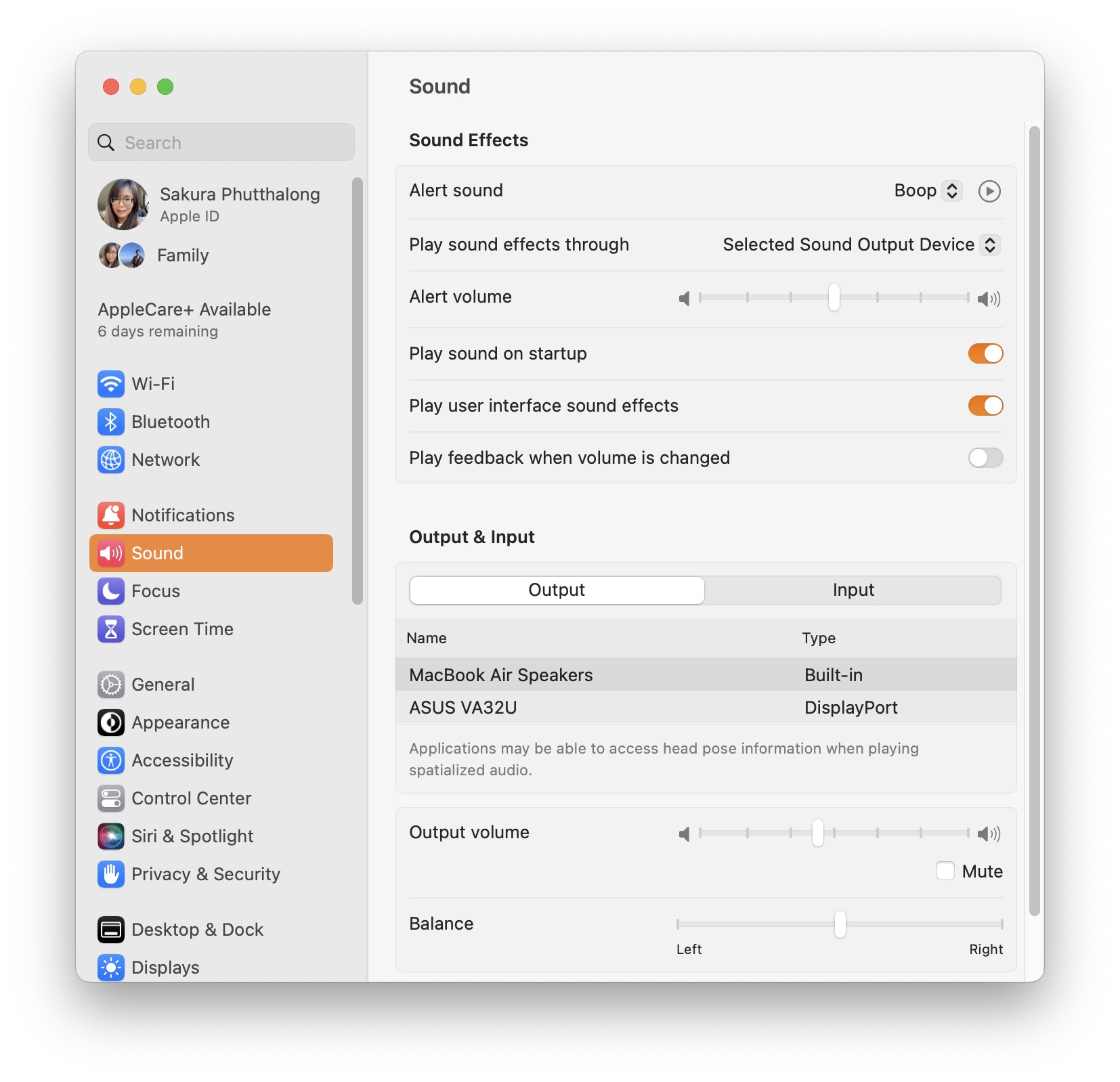 ตัวอย่างด้านล่าง กดปุ่ม Option + F11 ก็จะเป็นการเรียกหน้าต่างตั้งค่าเสียงขึ้นม