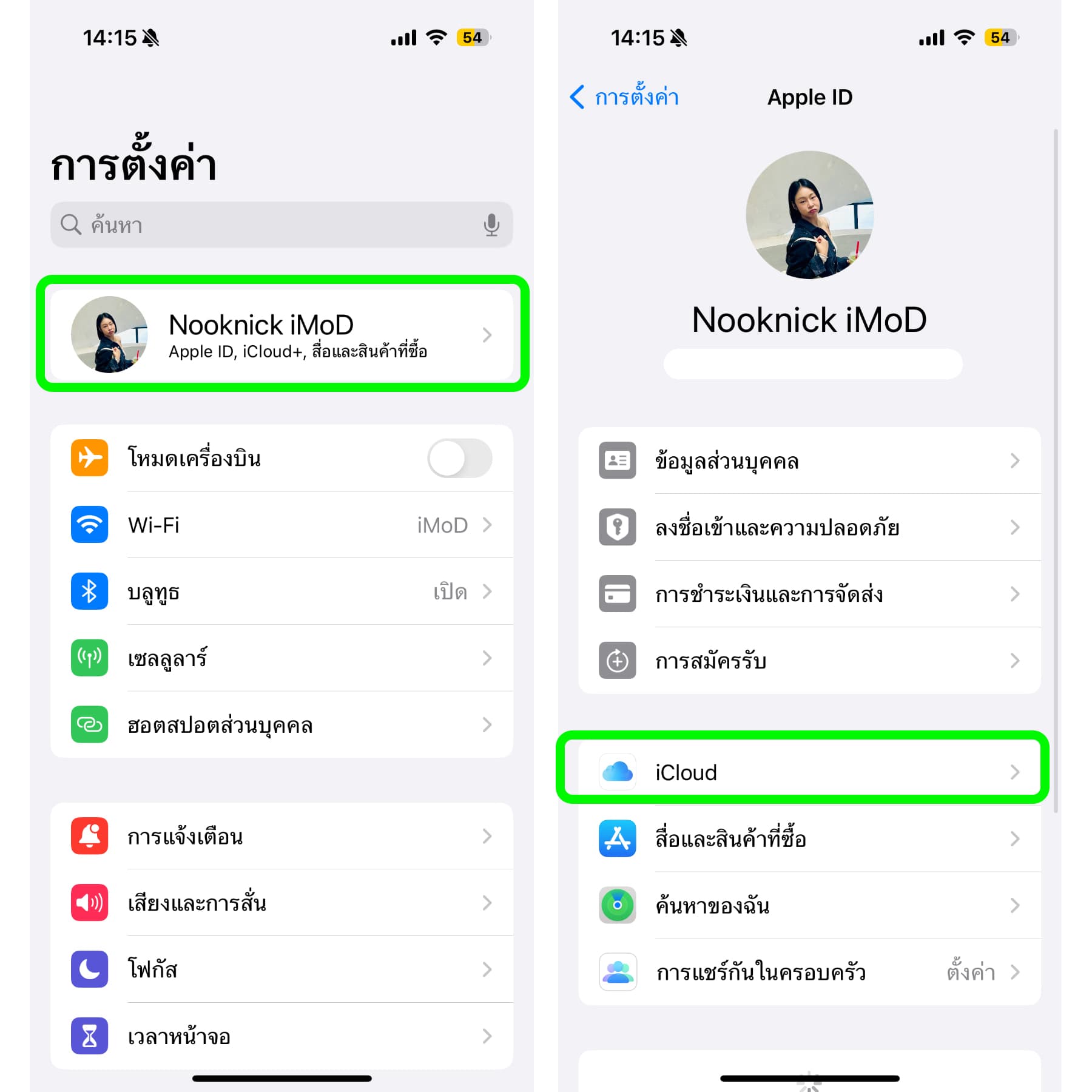 ตั้งค่าได้โดยไปที่ การตั้งค่า > Apple ID > iCloud