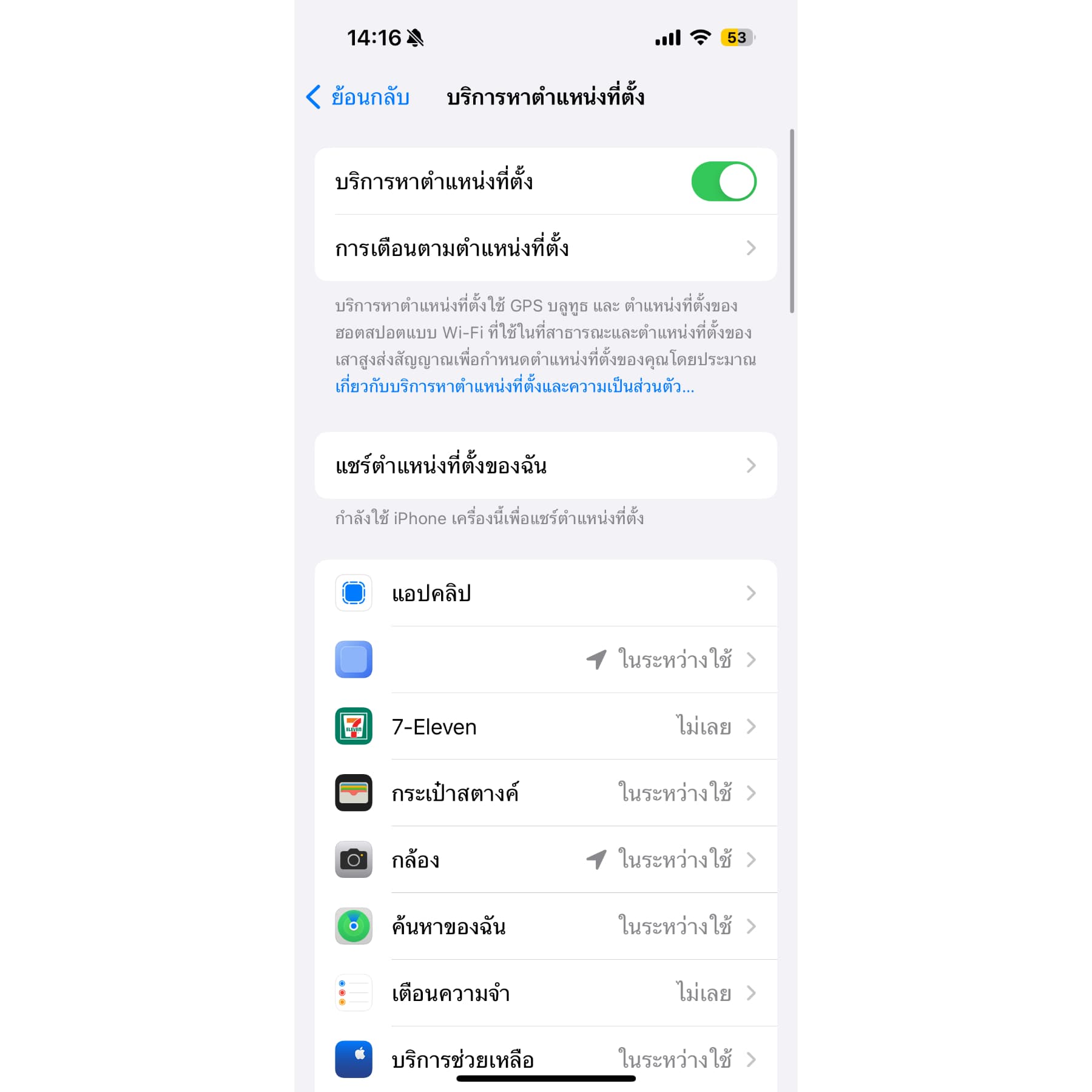 เข้าไปที่แอปการตั้งค่า > ความเป็นส่วนตัวและความปลอดภัย > บริการหาตำแหน่งที่ตั้ง > แอปไหนไม่จำเป็น เลือกเป็น “ไม่เลย”