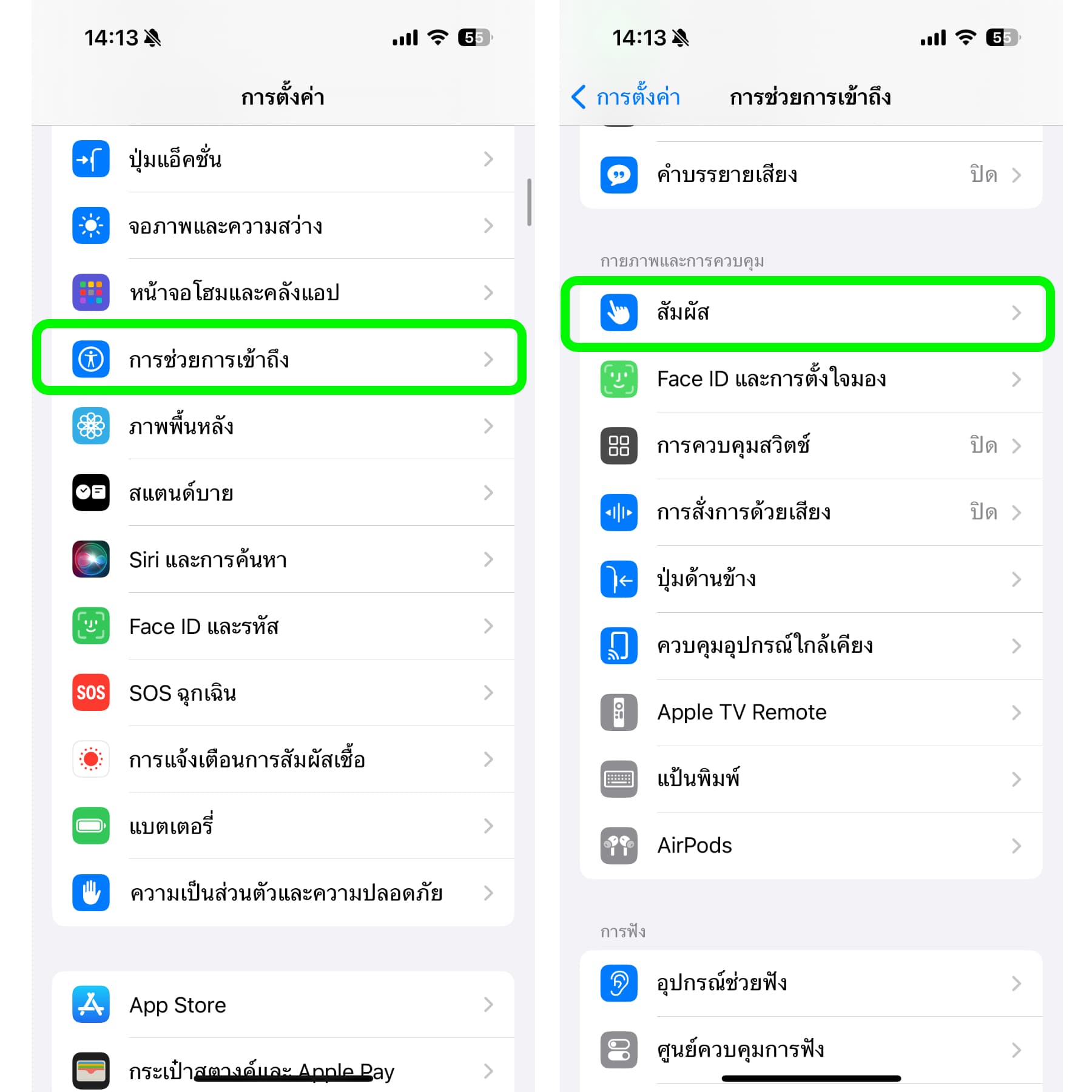ตั้งค่าได้โดยไปที่ การตั้งค่า > การช่วยการเข้าถึง > สัมผัส