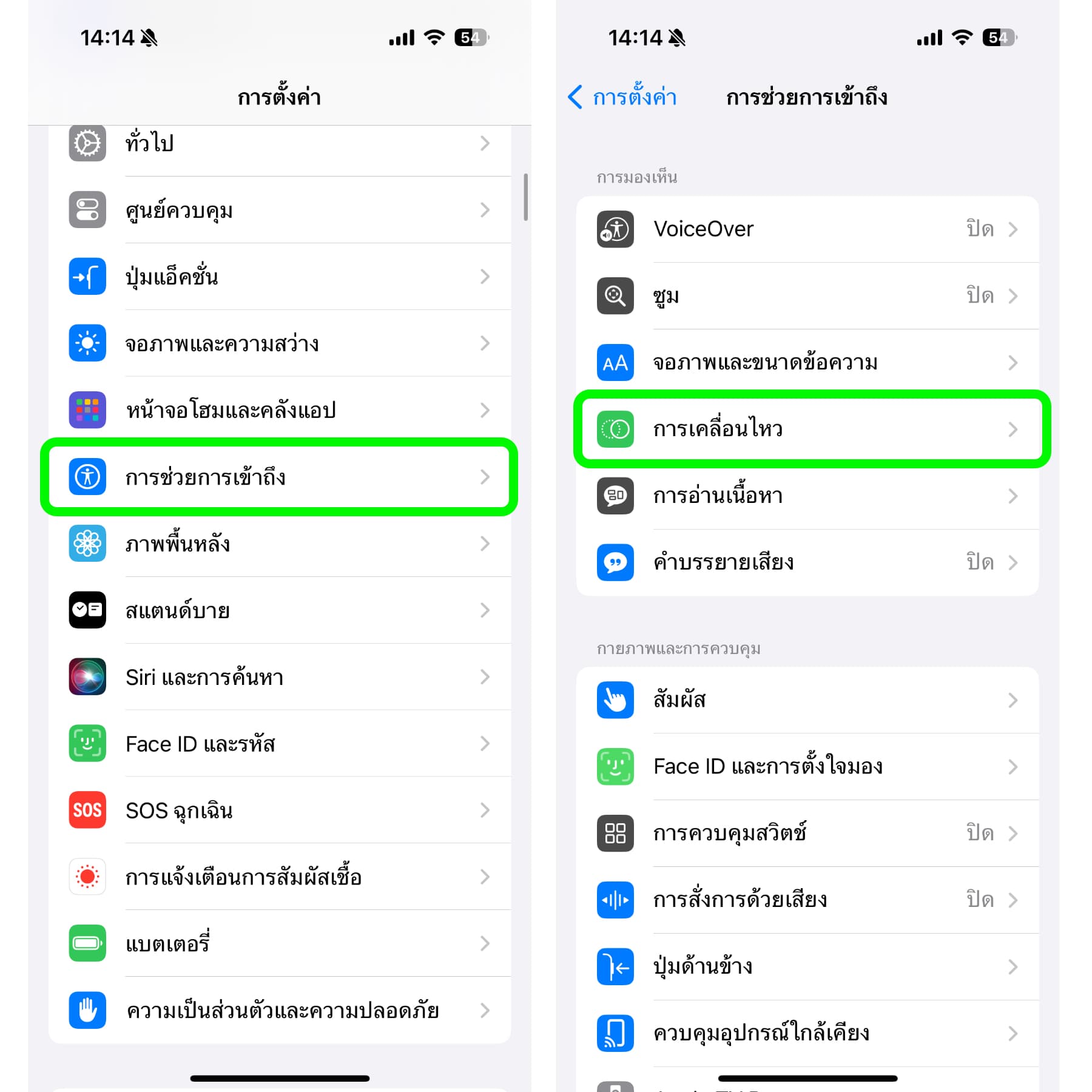 ตั้งค่าได้โดยไปที่ การตั้งค่า > การช่วยการเข้าถึง > การเคลื่อนไหว