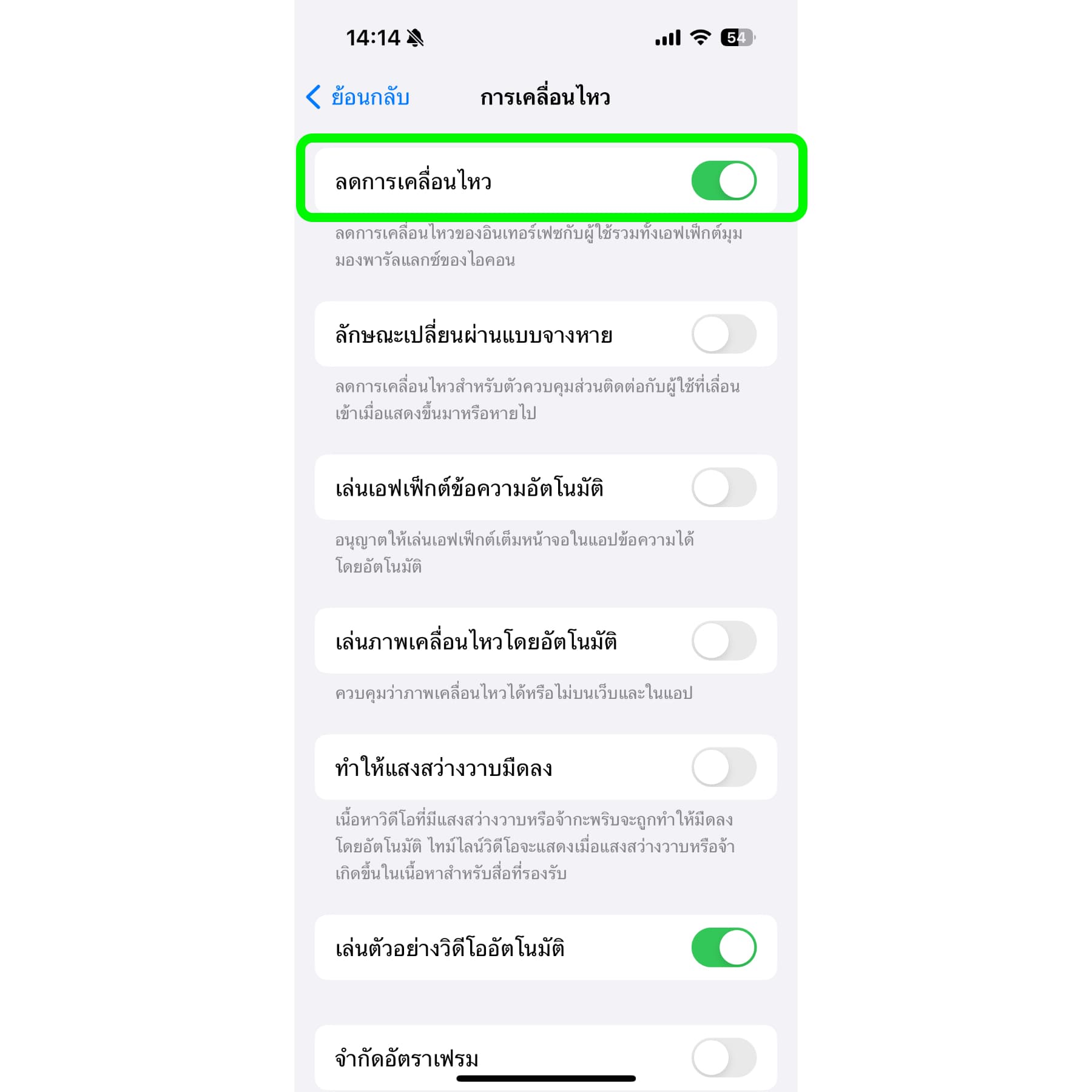 วิธีนี้แนะนำสำหรับคนที่ใช้ iPhone รุ่นเก่า ด้วยความสามารถของเครื่องและการทำงานหนัก ๆ ที่สวนทางกัน จะทำให้เครื่องของเราหน่วงและช้าเป็นธรรมดา ลองเปิดลดการเคลื่อนไหว เพื่อลดอนิเมชันต่าง ๆ ที่ไม่ค่อยจำเป็นเพื่อจะทำให้ดูเหมือนว่า iPhone ของเราเร็วขึ้นขึ้น