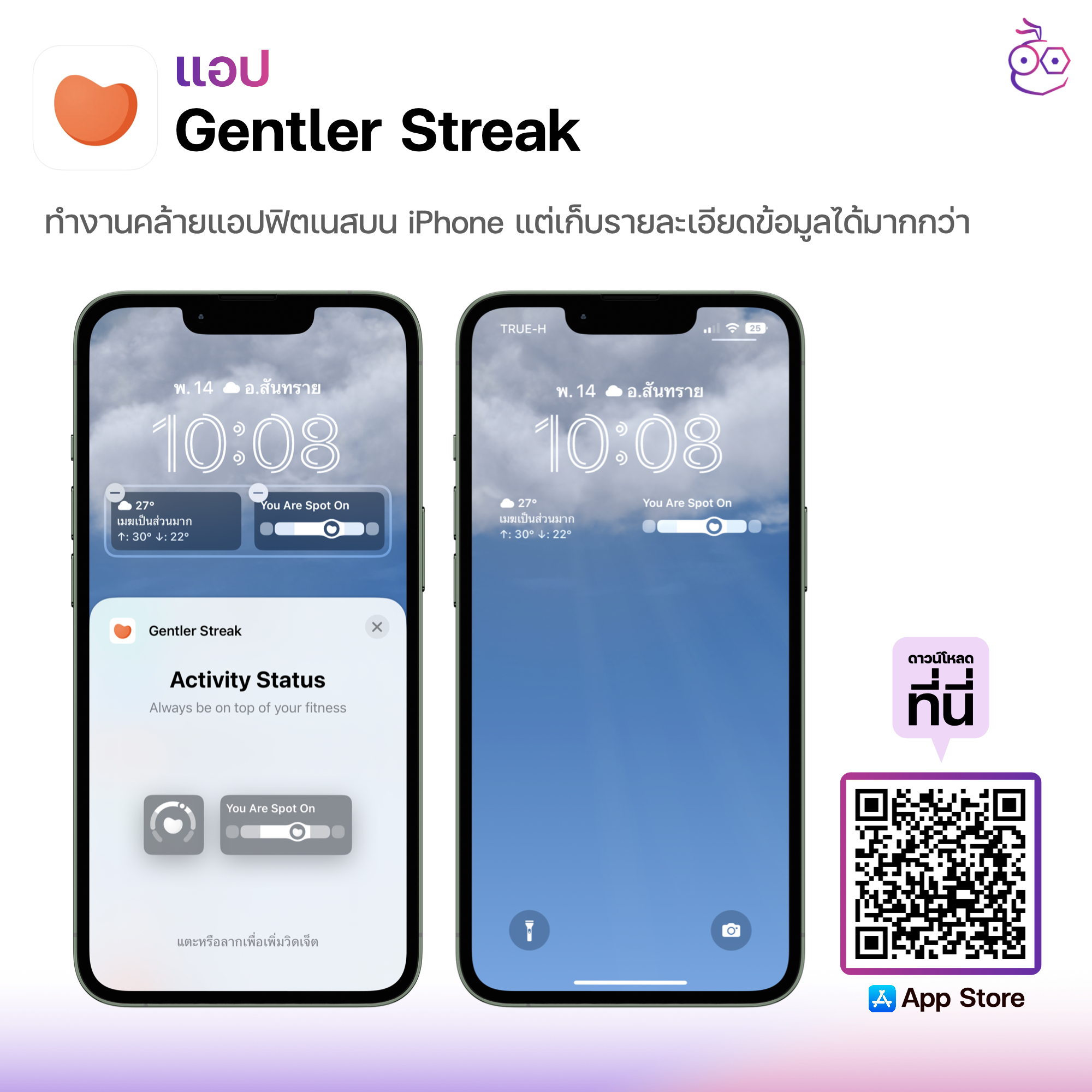 เป็นแอปที่ช่วยติดตามสุขภาพของเราซึ่งสามารถลิงก์กับแอปสุขภาพบน iPhone ของเราได้ด้วย ไม่ว่าจะเป็น จำนวนการก้าวเดิน เวลานอนหลับ จำนวนแคลอรีที่เผาผลาญไปในแต่ละวัน ซึ่งจะช่วยให้เรามีความกระตือรือร้นในการดูแลสุขภาพ ปรับปรุงการใช้ชีวิตประจำวันเพื่อสุขภาพที่ดีได้มากขึ้น โดยหน้าวิดเจ็ตก็จะอัปเดตข้อมูลด้านสุขภาพของเราให้เลยในแต่ละวัน