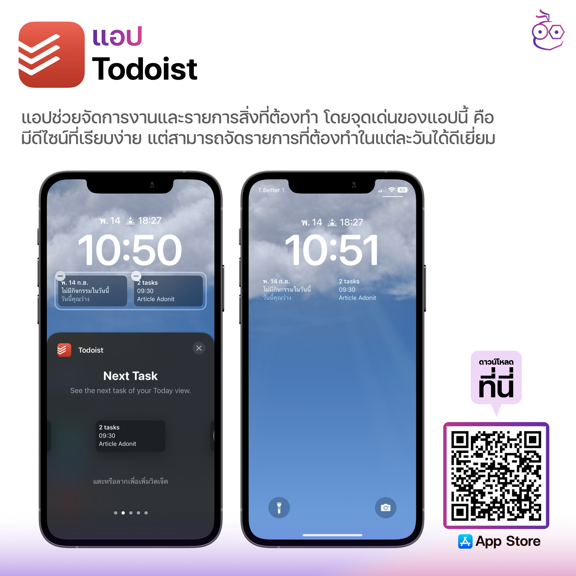 เป็นแอปที่ช่วยจัดการงานและรายการสิ่งที่ต้องทำ โดยจุดเด่นของแอปนี้คือ มีดีไซน์ที่เรียบง่าย แต่สามารถจัดการและวางแผนรายการที่ต้องทำในแต่ละวันได้ดีเยี่ยม ช่วยให้จัดระเบียบงานและชีวิตของเราได้ดีขึ้น นอกจากนี้ก็ยังมีคุณสมบัติการตั้งค่าการแจ้งเตืนอื่น ๆ ด้วย ถือว่าใช้งานง่ายเลยทีเดียว หากนำไปตั้งค่าหน้าวิดเจ็ตก็จะช่วยให้เราเห็น To do List ในแต่ละวันได้เลย