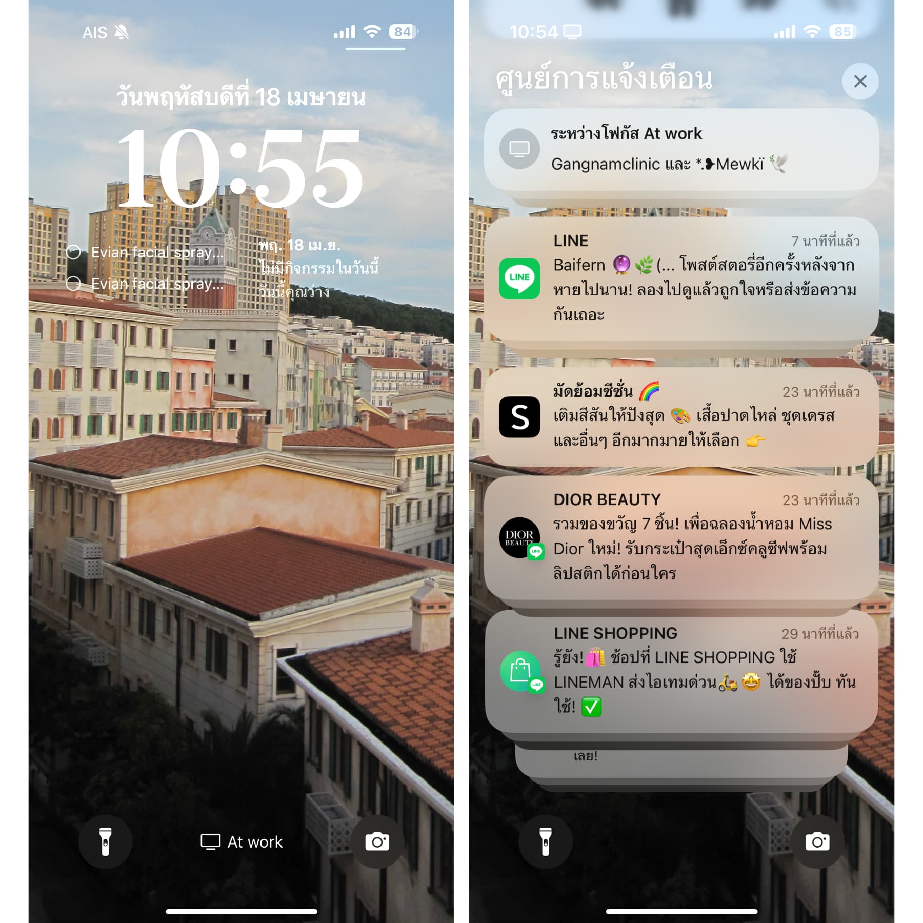 💡 หากใช้โหมดโฟกัส (Focus mode) หรือห้ามรบกวน (Do Not Disturb) คุณจะต้องปัดนิ้วขึ้นขึ้นจากขอบจอด้านล่างเล็กน้อยเพื่อดูการแจ้งเตือนทั้งหมดที่เข้ามา