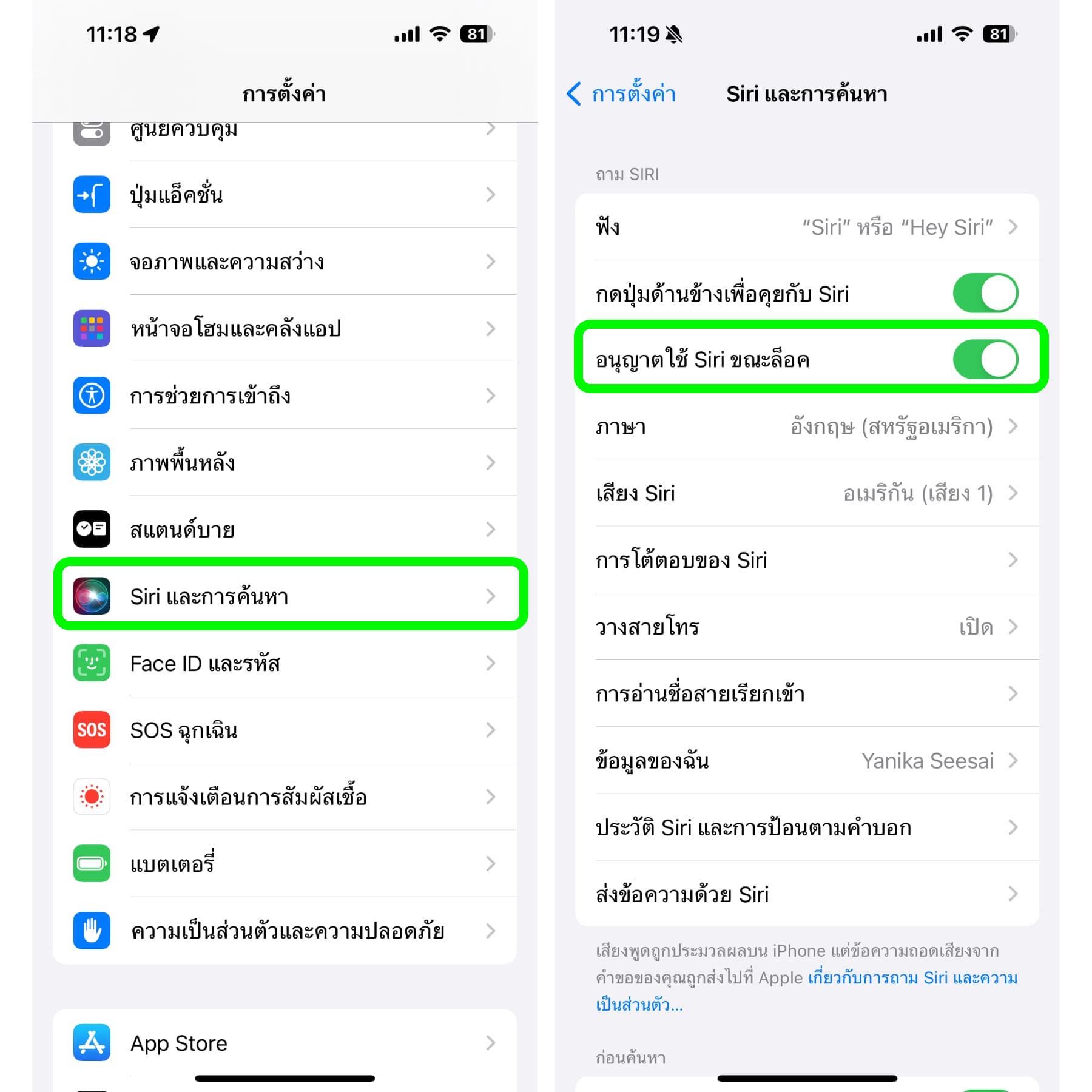 ก่อนใช้งานให้เข้าไปตั้งค่าเล็กน้อยเพื่อให้ Siri ใช้งานได้บนหน้าจอล็อค ทำได้โดย
