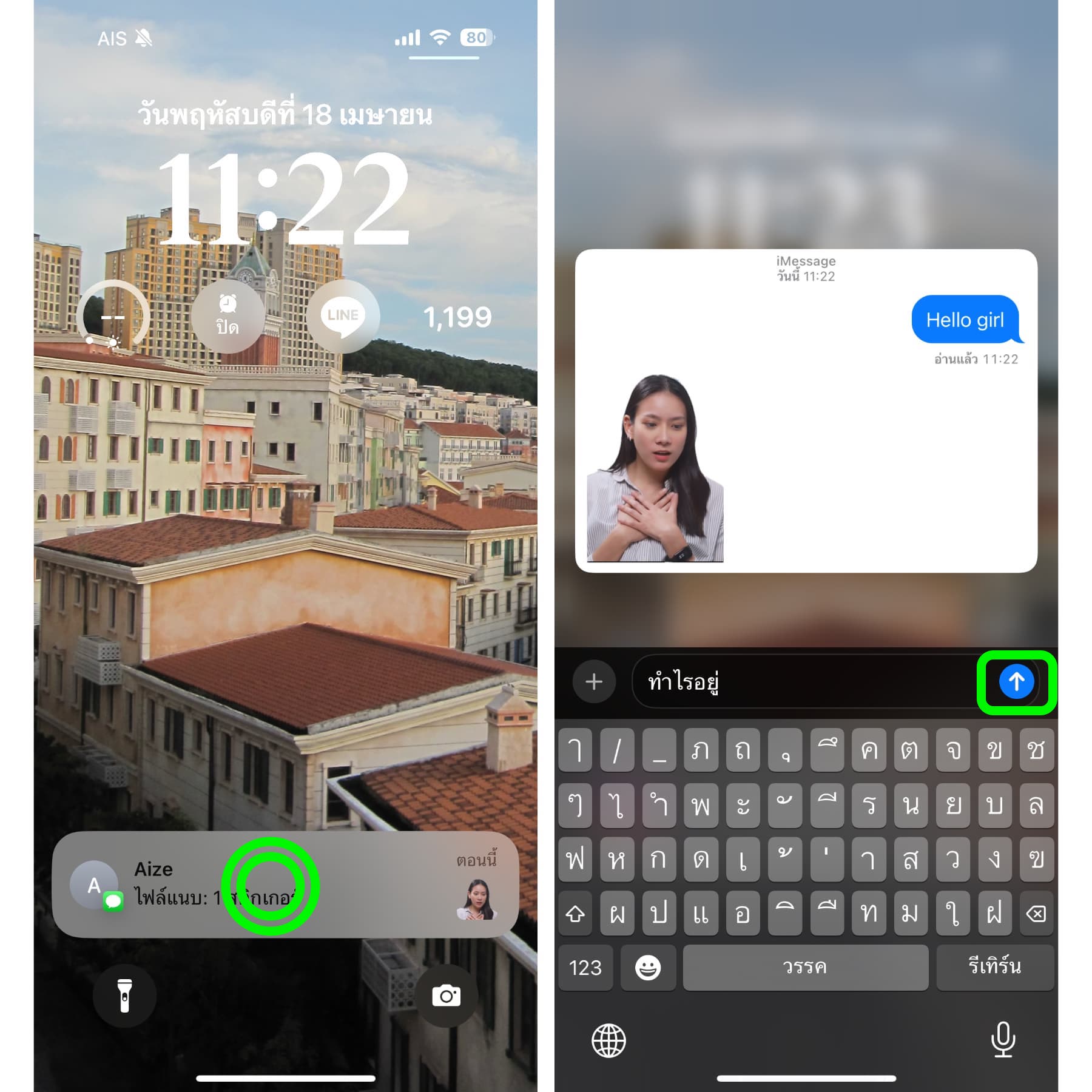 ตามชื่อฟีเจอร์ คุณสามารถตอบกลับข้อความใดก็ได้ที่คุณได้รับในแอปข้อความ (Messages) จากหน้าจอล็อคได้ทันที ไม่จำเป็นต้องเข้าไปในแอปข้อความก็ได้