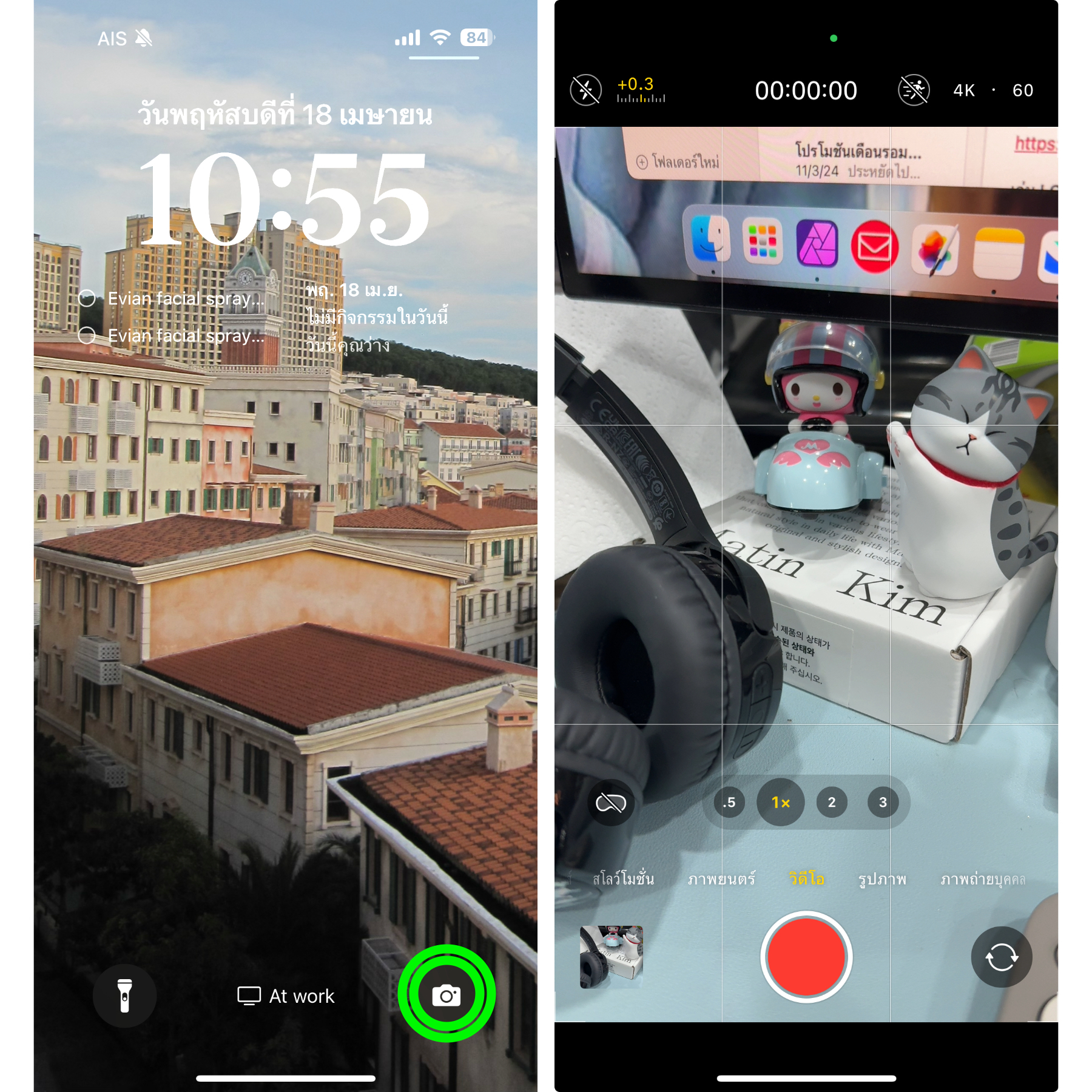 💡คุณสามารถเข้าถึงแอปกล้อง โดยการปัดนิ้วไปทางซ้ายได้เช่นกัน