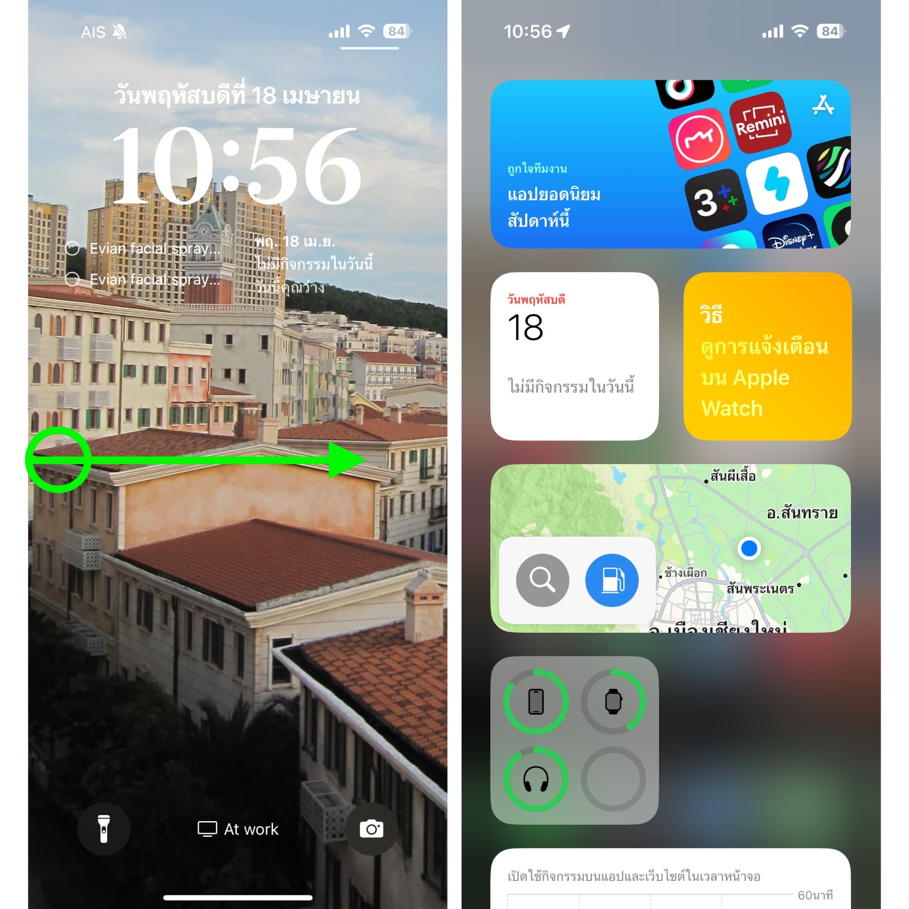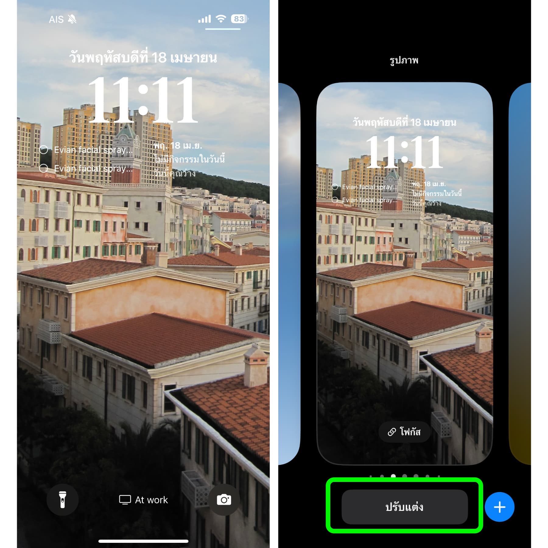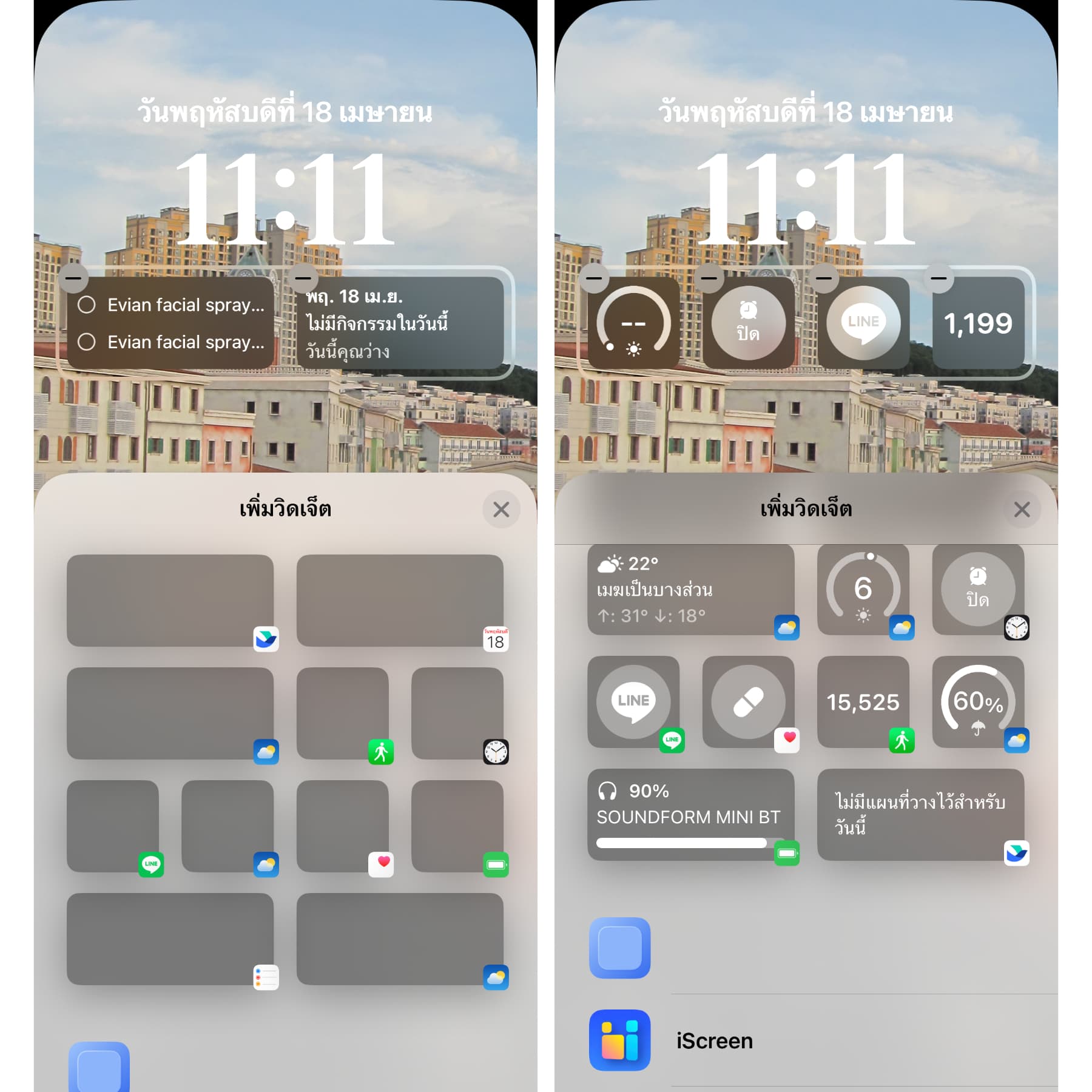 เพิ่มหรือเปลี่ยนวิดเจ็ตบนหน้าจอล็อคโดยการกดค้างที่หน้าจอล็อค > เลือก “ปรับแต่ง” (Customize) จากนั้นเลือก “หน้าจอล็อก” (Lock Screen) และแตะที่ส่วนของวิดเจ็ต (ด้านล่างนาฬิกา) เพื่อเพิ่มหรือลบวิดเจ็ตได้เลย