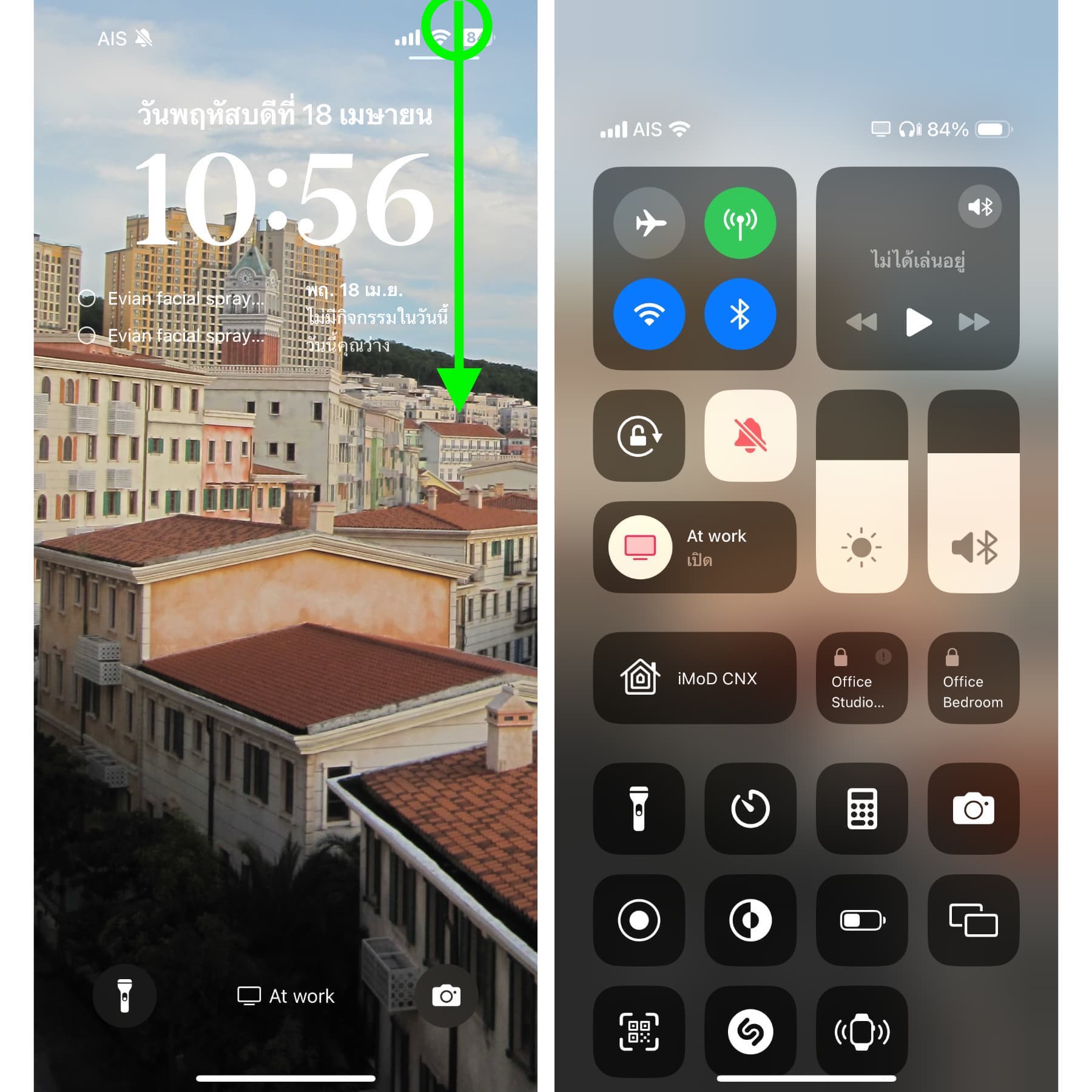 - iPhone รุ่น Face ID : ปัดนิ้วลงมาจากมุมขวาบนของหน้าจอ