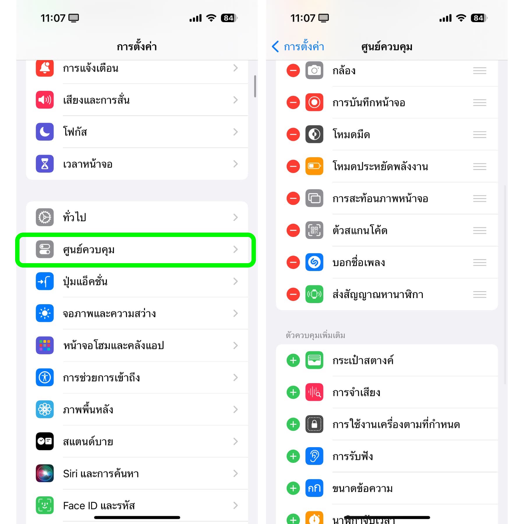 นอกจากนี้คุณยังสามารถปรับแต่งได้ว่า จะใหมีเมนูไหนอยู่บน Control Center บ้าง ตั้งค่าได้โดย