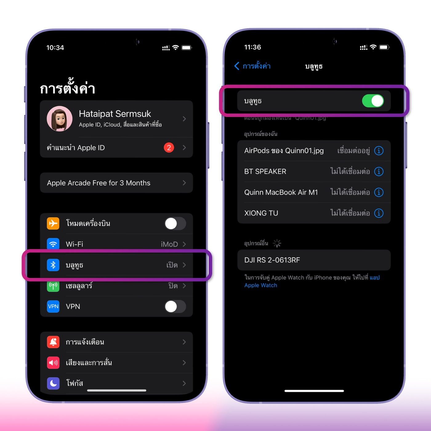 ถึง Bluetooth จะเปิดอยู่ ให้ปิดบลูทูธแล้วเปิดใหม่อีกครั้ง